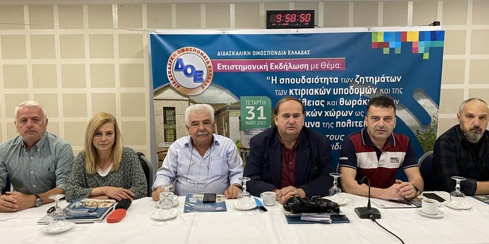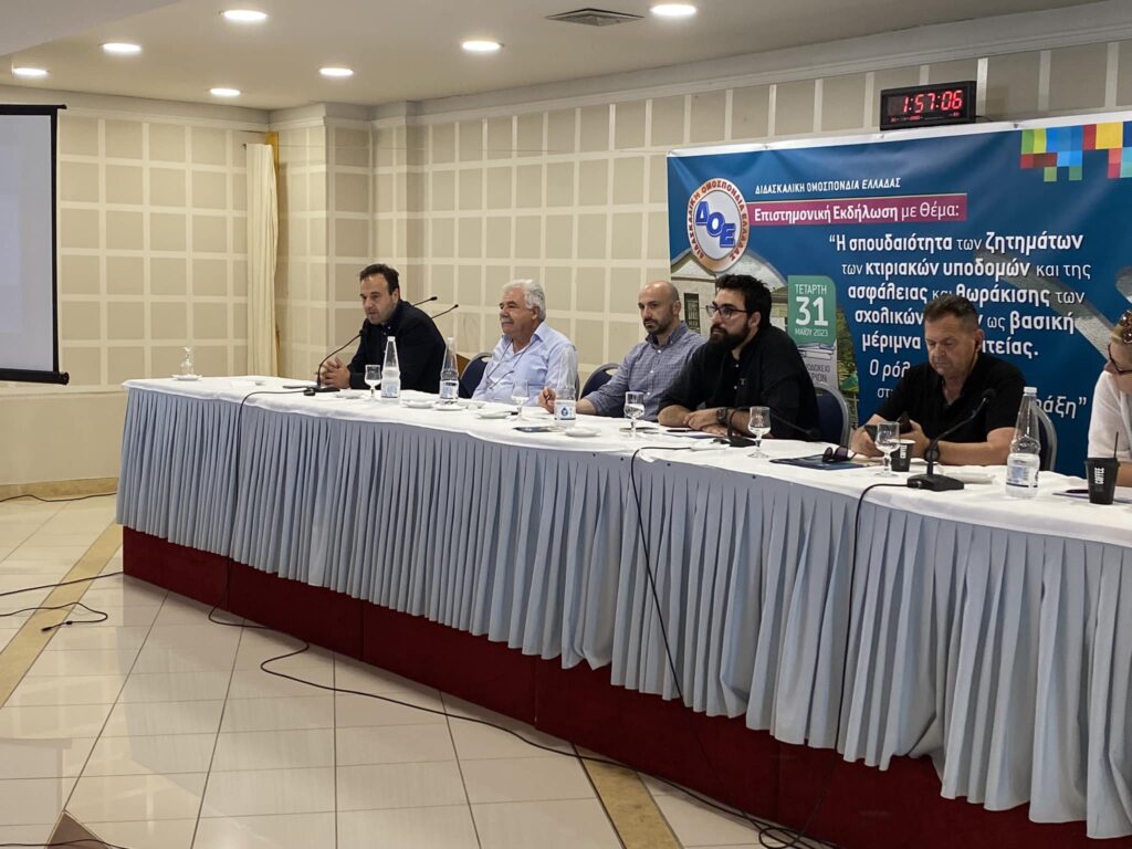 Το Δ.Σ. της Δ.Ο.Ε. σε συνεργασία με τον Σύλλογο Εκπαιδευτικών Π.Ε. Καρδίτσας και τον Δήμο Καρδίτσας, πραγματοποίησαν την Τετάρτη 31/5 στο ξενοδοχείο ΚΙΕΡΙΟΝ, επιστημονική εκδήλωση με θέμα: «Η σπουδαιότητα των ζητημάτων των κτιριακών υποδομών και της ασφάλειας και θωράκισης των σχολικών χώρων ως βασική μέριμνα της πολιτείας. Ο ρόλος τους στην εκπαιδευτική πράξη».