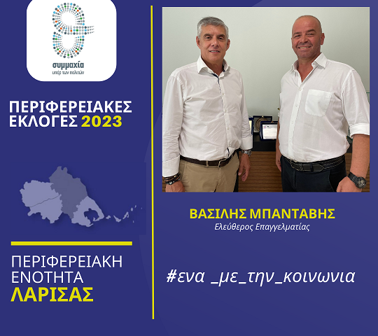 Τον ελεύθερο επαγγελματία Βασίλη Μπανταβή που κατέρχεται υποψήφιος περιφερειακός σύμβουλος στην Π.Ε. Λάρισας στις αυτοδιοικητικές εκλογές του Οκτωβρίου, καλωσόρισε ο Περιφερειάρχης Θεσσαλίας Κώστας Αγοραστός στον συνδυασμό «Συμμαχία υπέρ των πολιτών» που έχει σταθερά στο επίκεντρο τον άνθρωπο και αγωνίζεται με έργα, δράσεις, πρωτοβουλίες για μια Περιφέρεια χωρίς διακρίσεις και αποκλεισμούς.