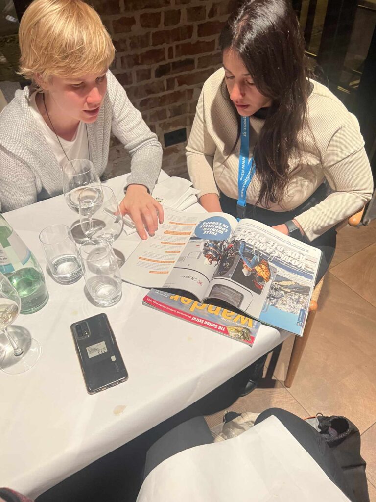Μετά το δείπνο ακολούθησε εκτενής συζήτηση B2B με τους Γερμανούς και έγινε ανταλλαγή επαφών. Η Βασιλική τους παραχώρησε προωθητικό υλικό και τους παρουσίασε ολοκληρωμένα πολυήμερα προγράμματα.