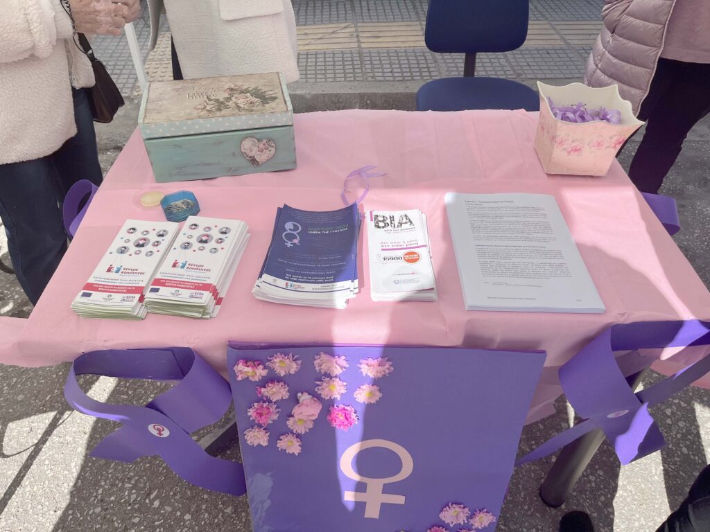 Τα μέλη της Δημοτικής Επιτροπής Ισότητας, Φωτίου Ιουλία, Καπούλα Στέλλα, Κακαράντζα Άννα, Μπαλάσκα Αναστασία, Λάππας Ιωάννης, Σπανού Στέλλα, Αικατερίνη Ευαγγέλου-Κίσσα και Γκαραβέλας Ηλίας, μοίρασαν φυλλάδια με σκοπό την ευαισθητοποίηση και ενημέρωση των δημοτών για την ισότητα των δύο φύλλων αλλά και τα δικαιώματα των γυναικών.