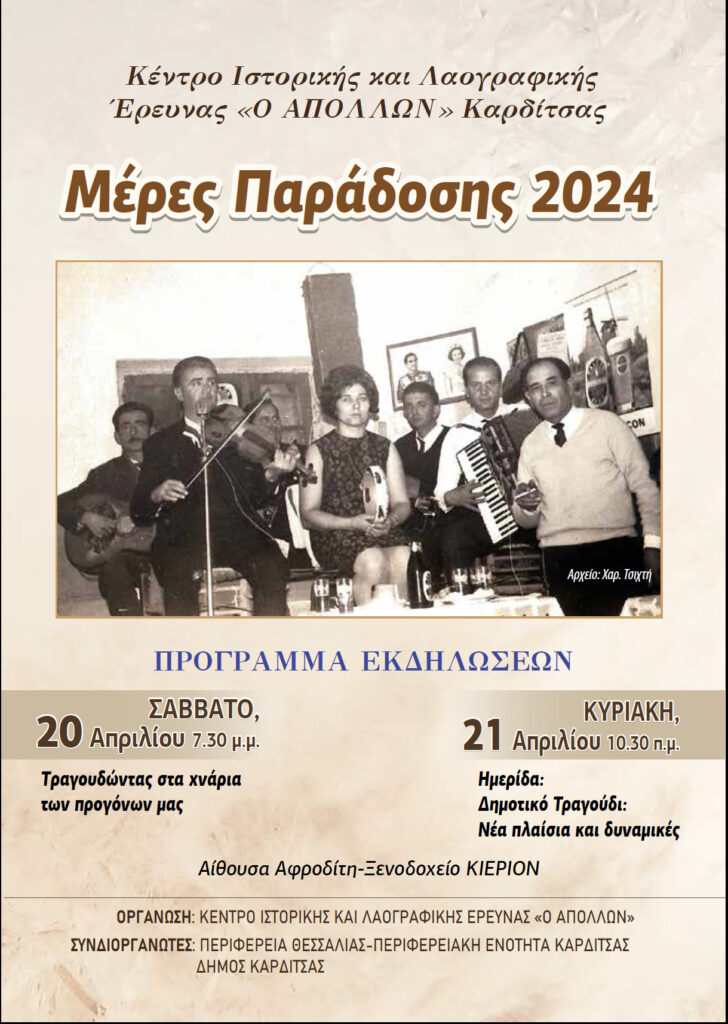 Mέρες Παράδοσης 2024: Μια εκδήλωση θεσμός για την Καρδίτσα-Στο δημοτικό τραγούδι αφιερωμένες οι φετινές εκδηλώσεις στις 20 & 21 Απριλίου στο “ΚΙΕΡΙΟΝ”