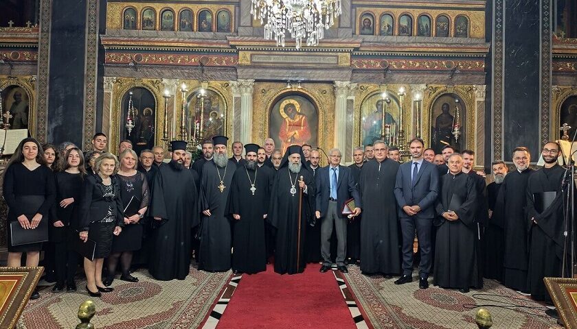 Τον Βυζαντινό Χορό των Ιεροψαλτών διεύθυνε ο Πρωτοψάλτης του Ιερού Μητροπολιτικού Ναού Αγίων Κωνσταντίνου και Ελένης Καρδίτσης κ. Θωμάς Βλάχος, Καθηγητής Βυζαντινής Μουσικής.