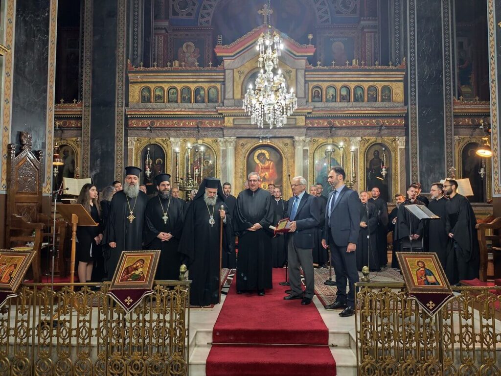 Μετά το πέρας της εκδήλωσης, ο σύλλογος απένειμε τιμητική πλακέτα στον πρωτοψάλτη κ. Ιωάννη Παπακώστα για την πολυετή προσφορά του στη βυζαντινή μουσική και την ψαλτική τέχνη.