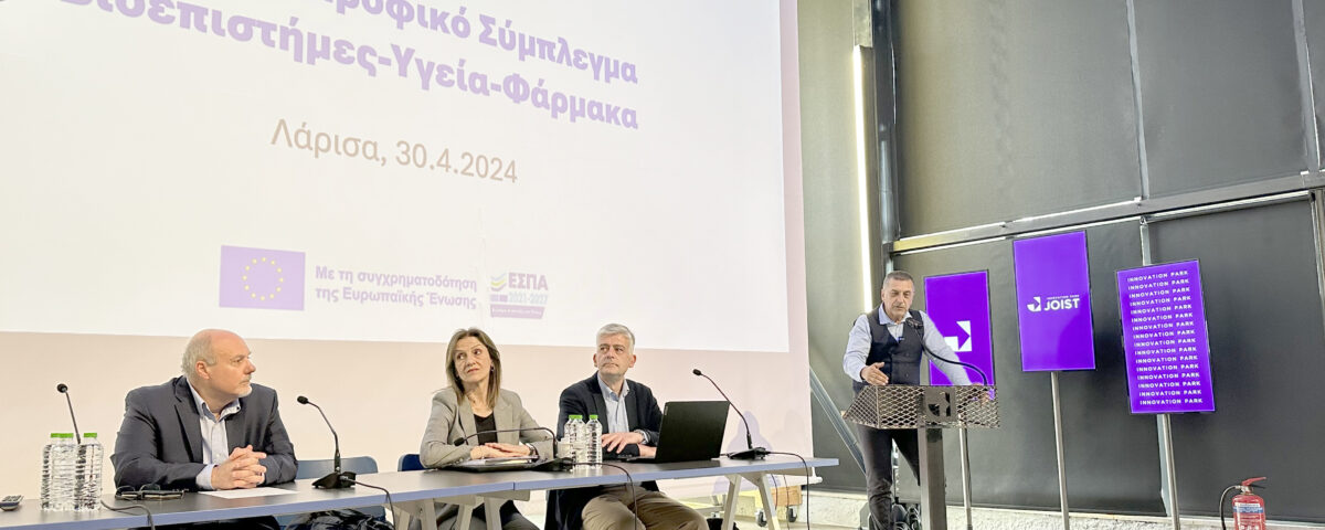 Η ημερίδα η τέταρτη κατά σειρά μετά την Καρδίτσα το Βόλο και τα Τρίκαλα, πραγματοποιήθηκε στο πάρκο Καινοτομίας JOIST με βασικά θέματα «Αγροδιατροφή» καθώς και « Βιοεπιστήμες- Φάρμακα-Υγεία».