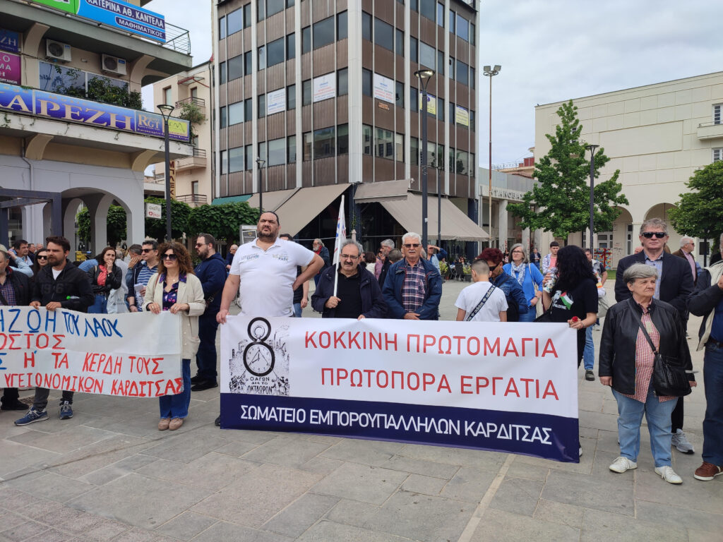 Με αγωνιστική διάθεση και μαζικότητα τιμήθηκε την Μ. Τετάρτη το πρωί, η Εργατική Πρωτομαγιά στην Καρδίτσα. Εργατικά σωματεία, συνδικαλιστικοί φορείς, οργανώσεις, εργαζόμενοι, άνεργοι και συνταξιούχοι πραγματοποίησαν μία μεγάλη συγκέντρωση στην κεντρική πλατεία της πόλης μετά από καλέσματα που απευθύναν το Εργατικό Κέντρο με το Ν.Τ. της ΑΔΕΔΥ και το Σωματείο Εμποροϋπαλλήλων και Υπαλλήλων με σχέση ιδιωτικού δικαίου με την Ένωση Γιατρών Νοσοκομείου και Κέντρων Υγείας Ν. Καρδίτσας και ακολούθησε πορεία στο κέντρο της πόλης. Παράλληλα έγιναν καταθέσεις στεφάνων στο μνημείο που βρίσκεται στην πλατεία Δικαστηρίων.