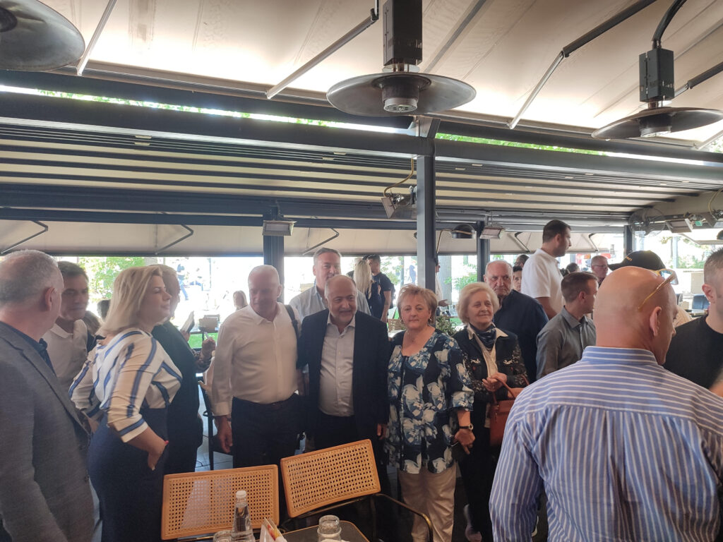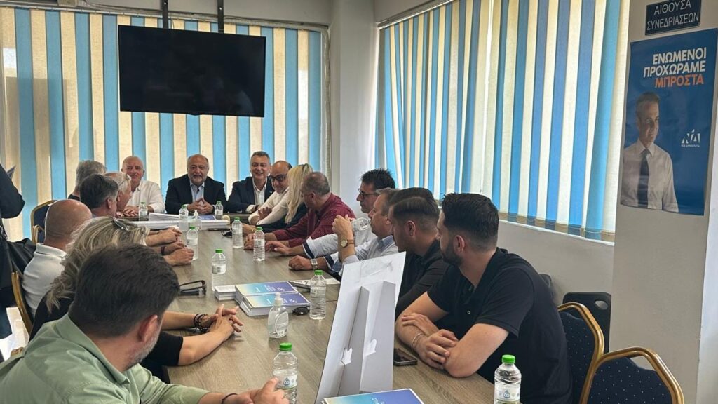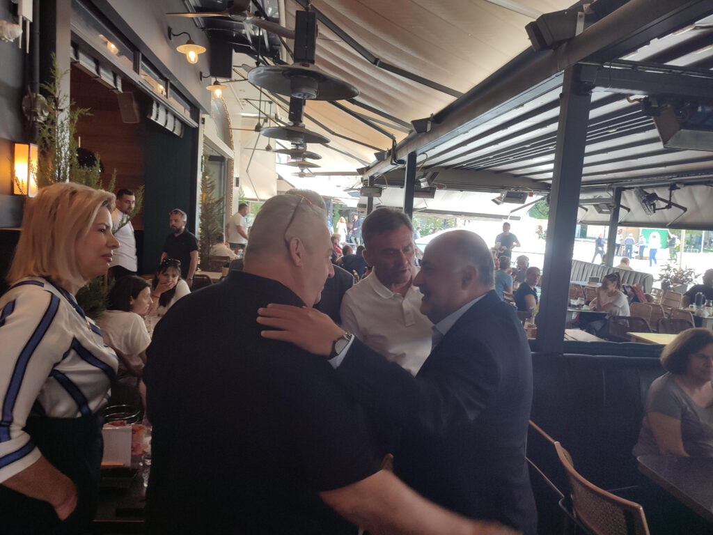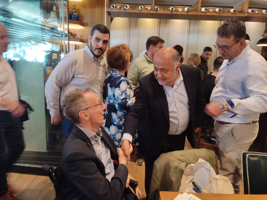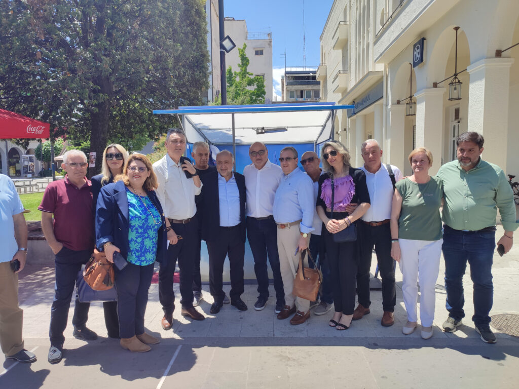 Αργότερα περπάτησε στο κέντρο της πόλης μας και επισκέφθηκε στο εκλογικό περίπτερο της Νέας Δημοκρατίας στην Κεντρική πλατεία και αμέσως μετά πραγματοποίησε συνάντηση και συζήτηση, στο Bar – Restaurant “JASMINE” με μέλη της Δ.Ε.Ε.Π., τους Βουλευτές, Αντιδημάρχους και φίλους της Νέας Δημοκρατίας.