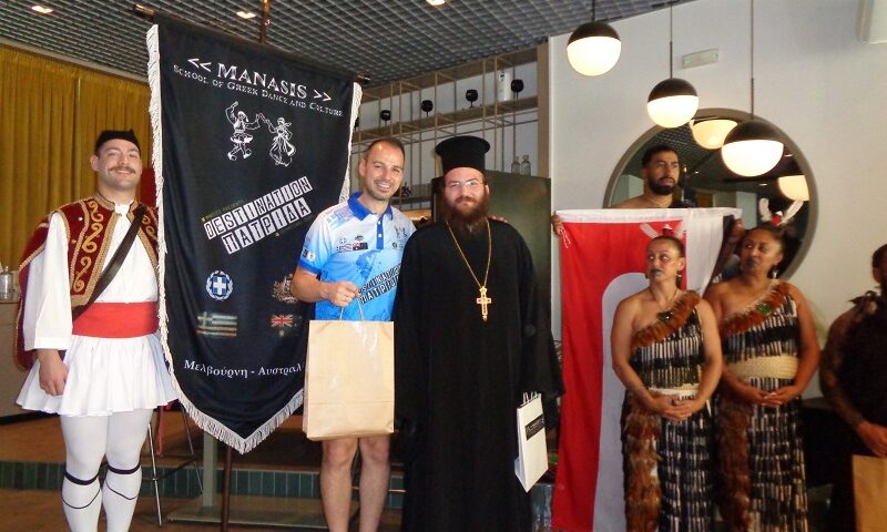 Ο εκπρόσωπος του Σεβασμιώτατου Μητροπολίτη Θεσσαλιώτιδος και Φαναριοφερσάλων κ.κ. Τιμόθεου, ο δήμαρχος Καρδίτσας Βασίλης Τσιάκος και η εντεταλμένη περιφερειακή σύμβουλος Καρδίτσας Αθηνά Πέτσα καλωσόρισαν στην πόλη μας τα χορευτικά συγκροτήματα από τη Νέα Ζηλανδία (συγκρότημα «Te Mātārae i Ōrehu»), το Αϊντάχο των ΗΠΑ συγκρότημα « Idaho Rocky Mountain Express») και το Συγκρότημα της Ελληνικής ομογένειας στην Μελβούρνη της Αυστραλίας «ΜANASIS School of Greek Dance and Culture», τους ευχαρίστησαν για τη συμμετοχή τους στην κορυφαία αυτή γιορτή του πολιτισμού και τους ευχήθηκαν καλή διαμονή.