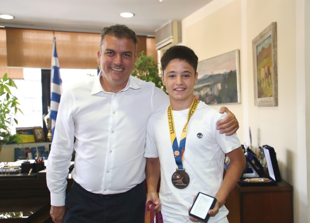 Με τον Λαρισαίο πρωταθλητή Ευρώπης στο άθλημα πάλης παραλίας ο Δήμαρχος Λαρισαίων