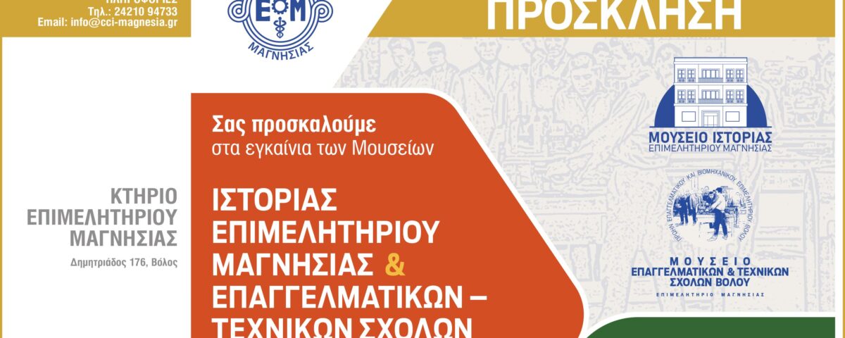 Τα εγκαίνια των μουσειακών αυτών χώρων θα πραγματοποιηθούν το Σάββατο 21 Σεπτεμβρίου στις 7 το απόγευμα στο κτίριο του Επιμελητηρίου Μαγνησίας.
