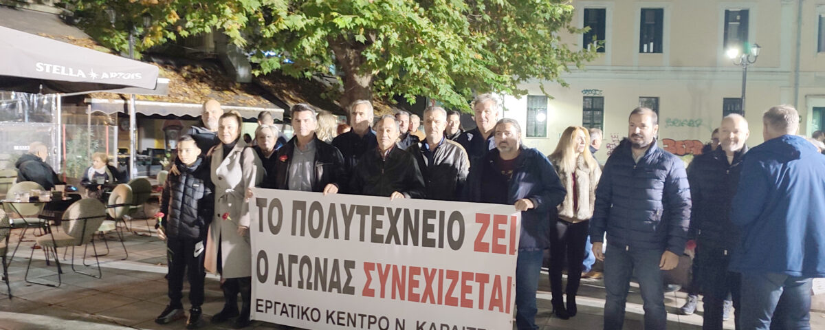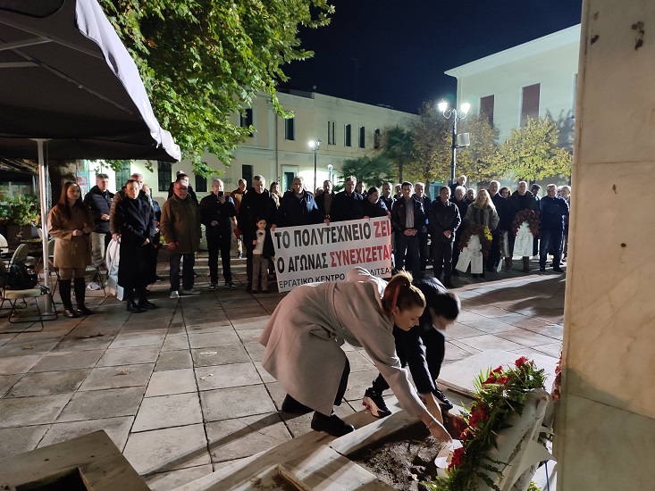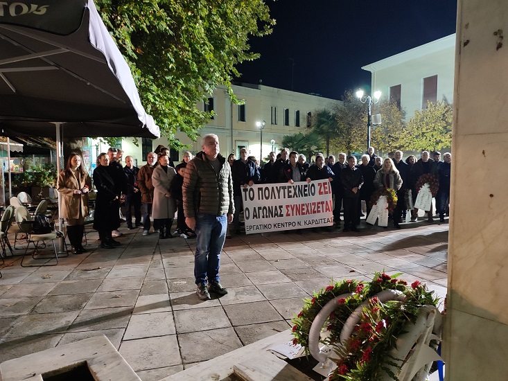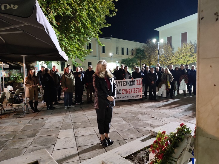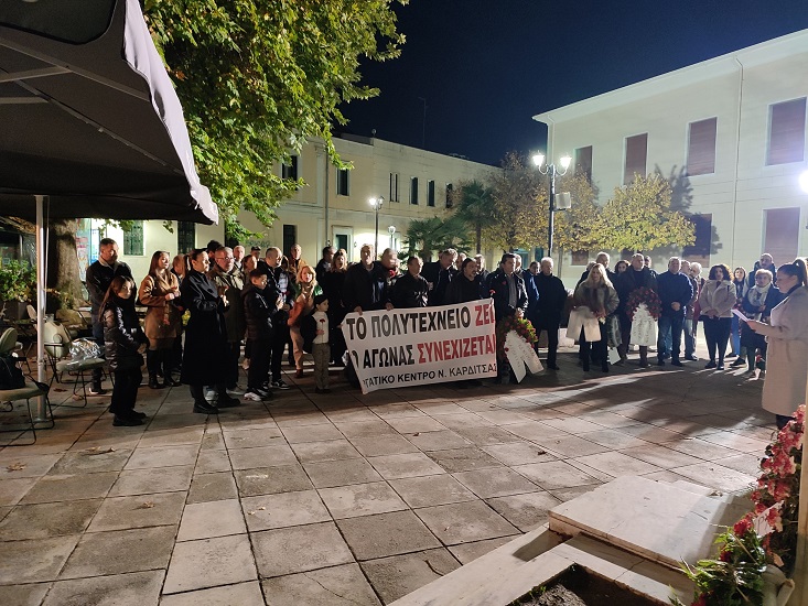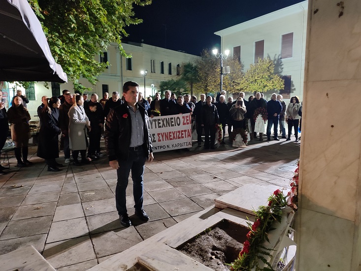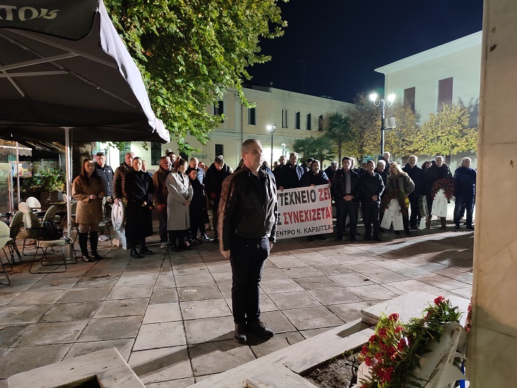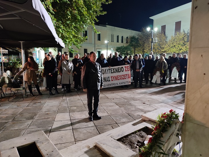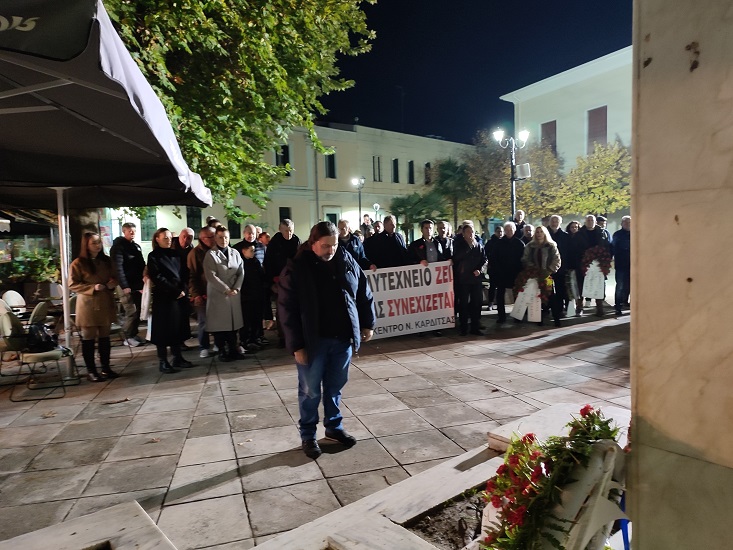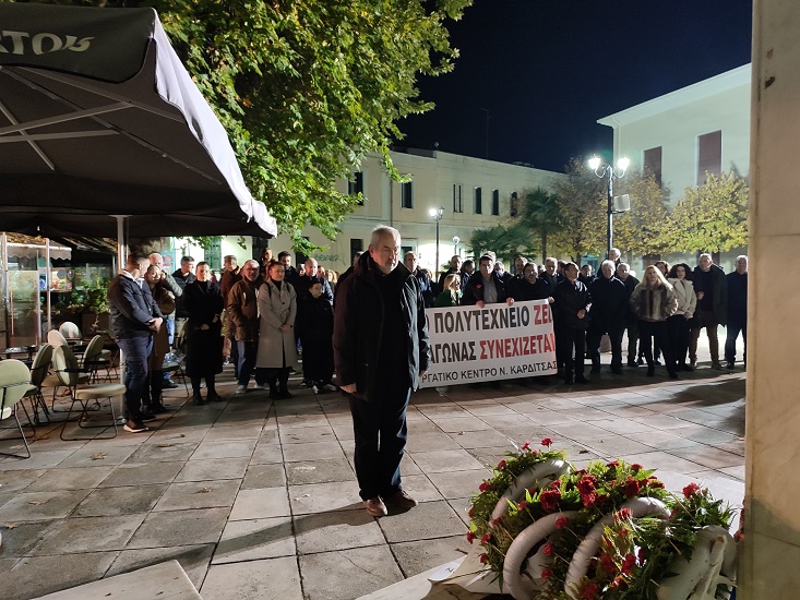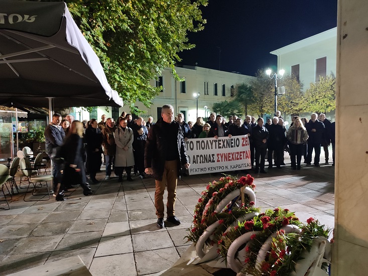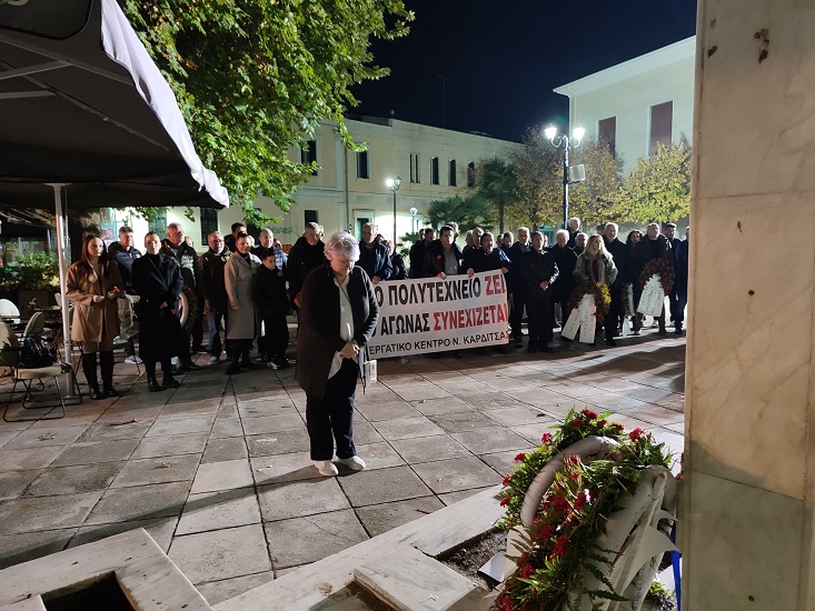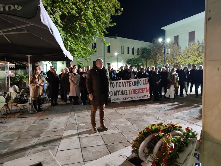 Με συμμετοχή κυρίως εκπροσώπων τους, πραγματοποιήθηκε το απόγευμα της Κυριακής (17/11) η εκδήλωση των φορέων της Καρδίτσας για την επέτειο του Πολυτεχνείου.