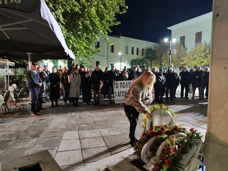 Συγκεκριμένα είχαμε στις 6 μ.μ. κατάθεση στεφάνων στο μνημείο στην πλατεία Δικαστηρίων από το Εργατικό Κέντρο, το Ν.Τ. της ΑΔΕΔΥ, και άλλων φορέων όπου απηύθυνε σύντομο χαιρετισμό η Γεν. Γραμματέας του Εργατικού Κέντρου Καρδίτσας κα. Δώρα Γούλα.