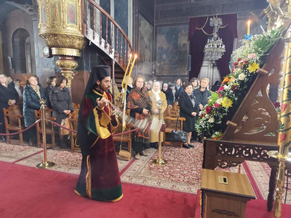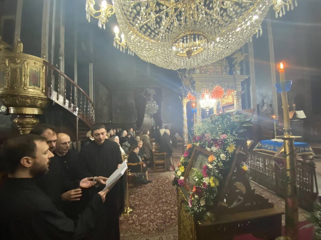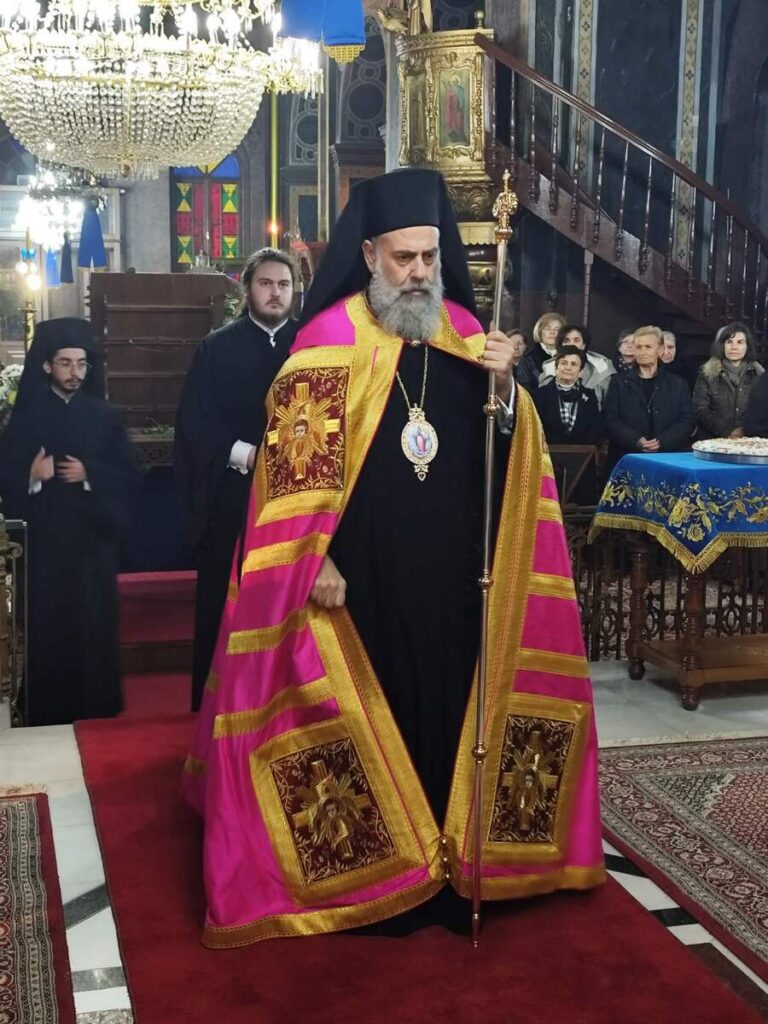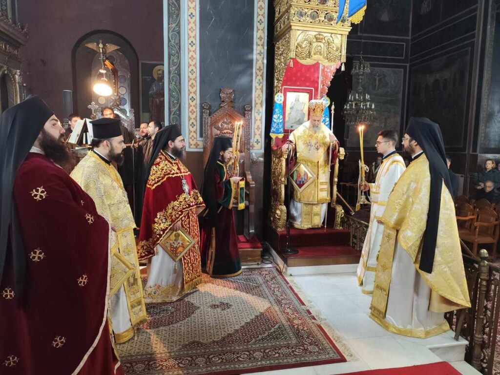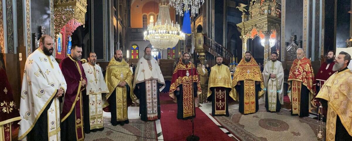 Ως εκ τούτου, κατά την ακολουθία του Εσπερινού προέστη ο Πανοσιολογιώτατος Αρχιμανδρίτης π. Αμφιλόχιος Παπανδρέου, Πρωτοσύγκελλος της Ιεράς μας Μητροπόλεως, ενώ στην ακολουθία του Όρθρου χοροστάτησε και τη Θεία Λειτουργία τέλεσε ο Σεβασμιώτατος Μητροπολίτης μας κ. Τιμόθεος.