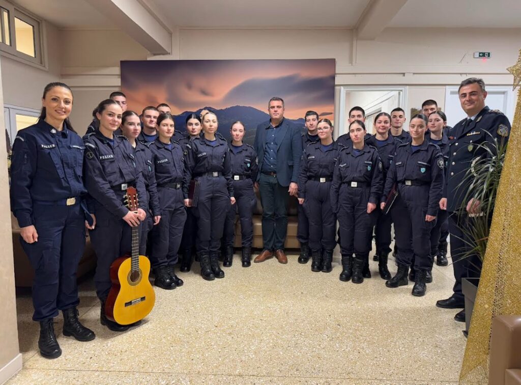 Σε Ιδιαίτερα γιορτινό κλίμα υποδέχθηκε ο Αντιπεριφερειάρχης Καρδίτσας κ.Κων/νος Τέλιος τις παραμονές των Χριστουγέννων, τους δόκιμους της Σχολής Αστυφυλάκων Μουζακίου και του Κέντρου Εκπαίδευσης Στρατονομίας Ρούσσου Καρδίτσας, οι οποίοι έψαλαν τα χριστουγεννιάτικα κάλαντα, γεμίζοντας μελωδίες και ζεστασιά το κτίριο της Περιφέρειας.