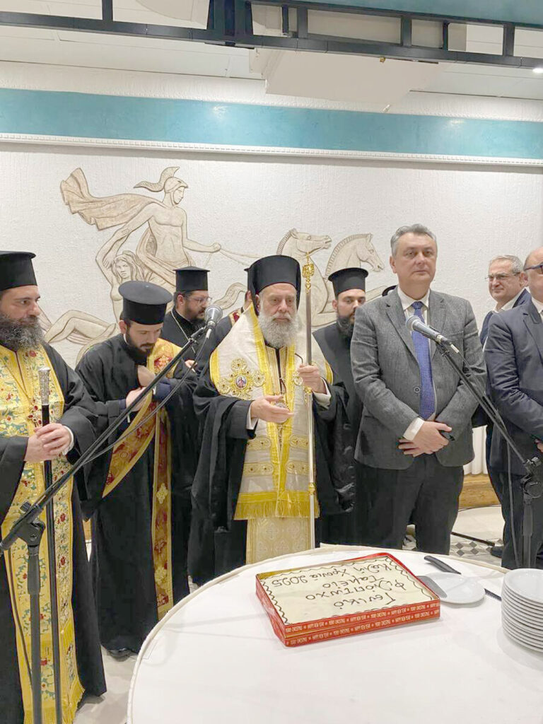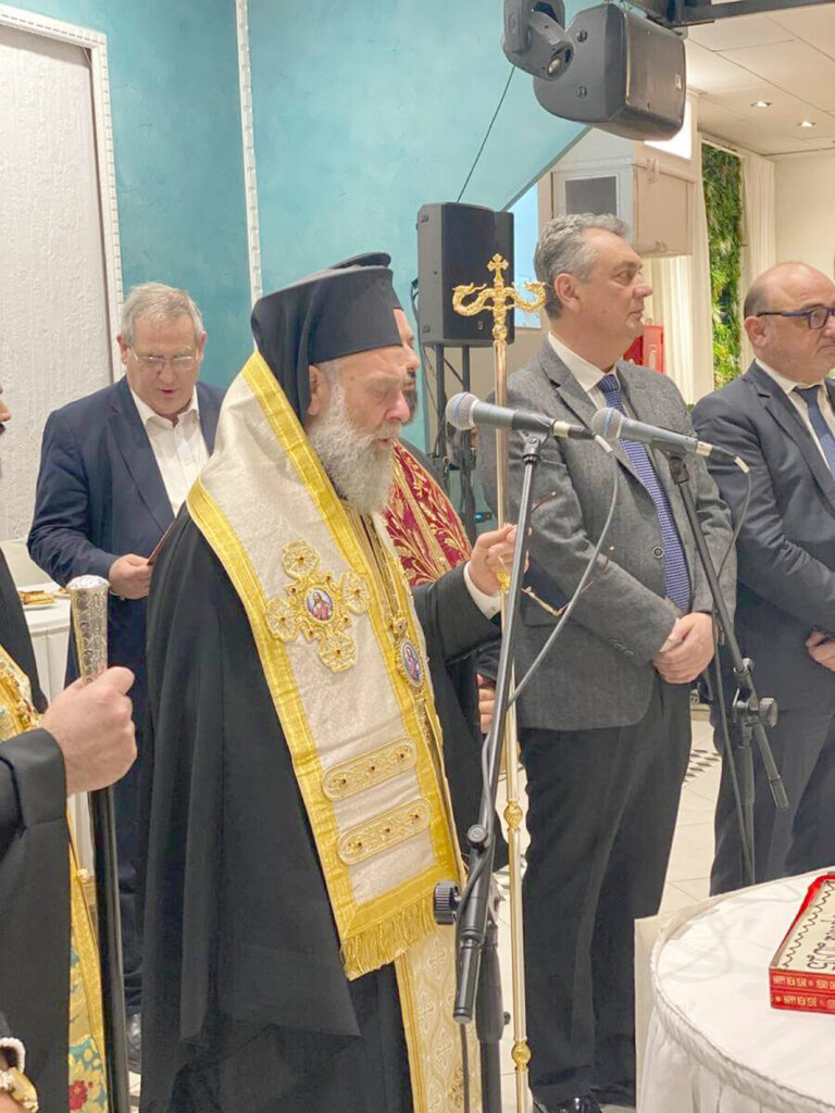 Ο Σεβασμιώτατος Μητροπολίτης κ. Τιμόθεος, ως Πρόεδρος του Γενικού Φιλοπτώχου Ταμείου ευλόγησε και έκοψε την πίτα ενώ προηγουμένως απηύθυνε λόγο εόρτιο τόσο προς τις εθελόντριες κυρίες όσο και σε όλους τους συνεργάτες και φίλους του Γενικού Φιλοπτώχου Ταμείου. Στη συνέχεια, ευχαρίστησε τον Υπεύθυνο του Γ.Φ.Τ. Πανοσιολογιώτατο Αρχιμανδρίτη π. Θεόκλητο Δήμου για το σημαντικό έργο που επιτελεί στην τοπική κοινωνία.