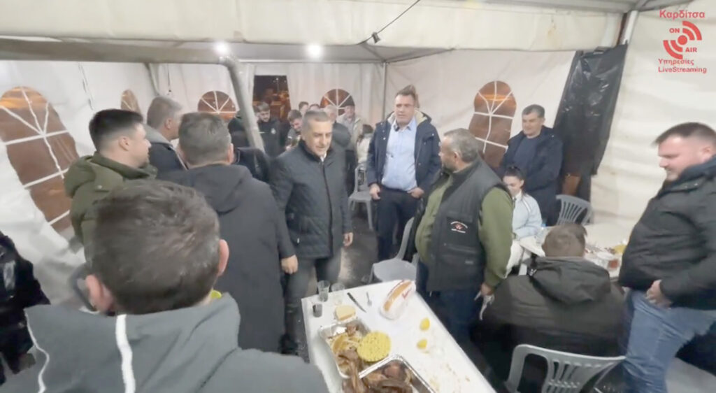 Ο Δημήτρης Κουρέτας συνοδευόμενος από τον Αντιπεριφερειάρχη ΠΕ Καρδίτσας Κώστα Τέλιο, τον Αντιπεριφερειάρχη Πρωτογενούς Τομέα Δημήτρη Τσέτσιλα, και τους περιφερειακούς συμβούλους Κ. Μπαρμπούτη, Σ. Ξάφο, Σ. Τσιάρα επισκέφθηκε όλες τις παράγκες που έχουν στήσει κατά μήκος του δρόμου και ανά δήμο οι Καρδιτσιώτες αγρότες και συνομίλησε με τον πρόεδρο της ΕΟΑΣΚ, Κ. Τζέλα, τον Γενικό Γραμματέα της Ομοσπονδίας και αντιδήμαρχο Σοφάδων Σωτήρη Γιαννακό, ενώ το παρών έδωσε και ο δήμαρχος Σοφάδων Δημοσθ. Κατσής.