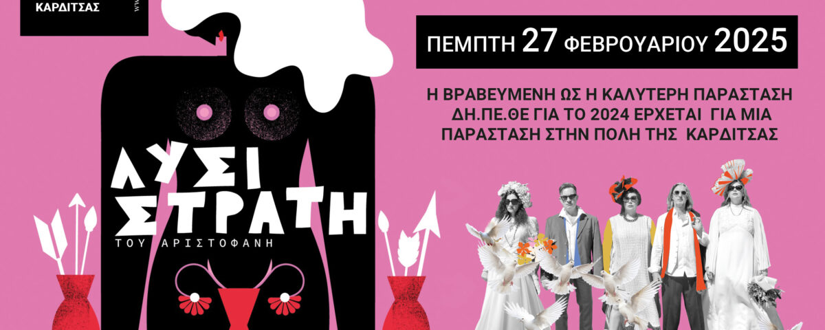 Με την παράσταση «Λυσιστράτη» του Αριστοφάνη, που ανέβηκε στο πλαίσιο του θεσμού του ΔΗ.ΠΕ.ΘΕ. Σερρών «Το Καλοκαίρι της Κωμωδίας», και κέρδισε τόσο το γέλιο, το χειροκρότημα και το σεβασμό των θεατών όσο και το Βραβείο καλύτερης παράστασης στην κατηγορία ΔΗ.ΠΕ.ΘΕ από την Ένωση Κριτικών Θεάτρου και Παραστατικών Τεχνών για το 2024, θα ανοίξει η αυλαία του 40ου Πανελλήνιου Φεστιβάλ Ερασιτεχνικού Θεάτρου Καρδίτσας την Πέμπτη 27 Φεβρουαρίου 2025, και ώρα 20:30, στο Δημοτικό Κινηματοθέατρο.