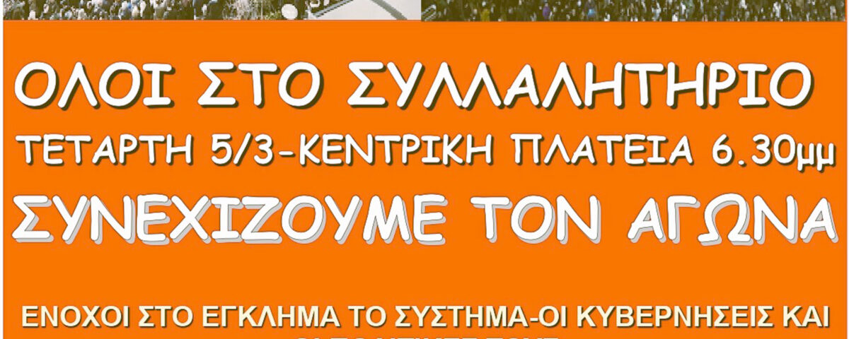 ΕΛΜΕ Καρδίτσας: Ολοι στο συλλαλητήριο την Τετάρτη 5/3 στην κεντρική πλατεία στις 6.30μμ-ΣΤΟΥΣ ΔΡΟΜΟΥΣ ΣΥΝΕΧΙΖΟΥΜΕ ΤΟΝ ΑΓΩΝΑ