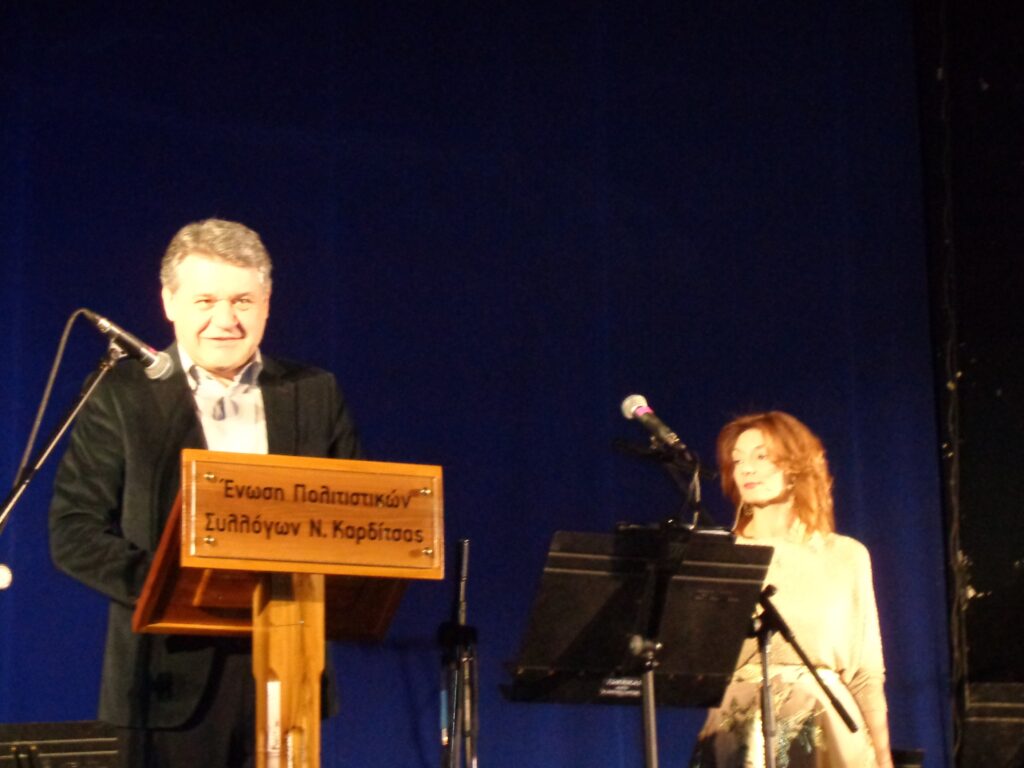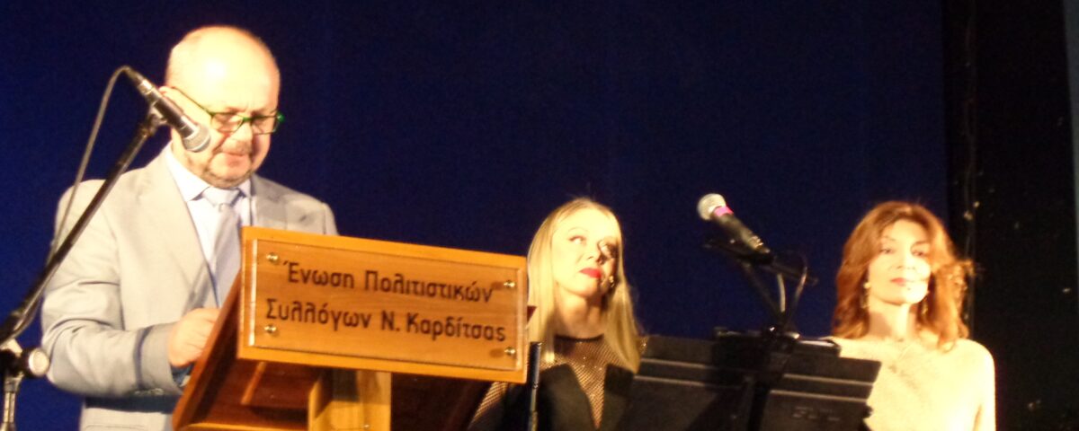 Να ευχαριστήσω ξανά, εκ μέρους όλης της Επιτροπής τον πρόεδρο της Ένωσης των Πολιτιστικών Συλλόγων Καρδίτσας για την τιμητική πρόσκληση και την ζεστή φιλοξενία. Θα ήθελα από αυτό το βήμα να τον ευχαριστήσω και προσωπικά όπως και όλους τους ανθρώπους του Φεστιβάλ γιατί αυτός είναι ο τόπος και της δικής μου καταγωγής (ο πατέρας μου γεννήθηκε στο Θραψίμι και πήγε Γυμνάσιο στους Σοφάδες) και να εκφράσω την προσωπική μου συγκίνηση που υπάρχουν τέτοιοι άνθρωποι και τέτοιες προσπάθειες που όπως λέει κι ο ποιητής “συντηρούν φωλιές νερού μέσα στις φλόγες”.
