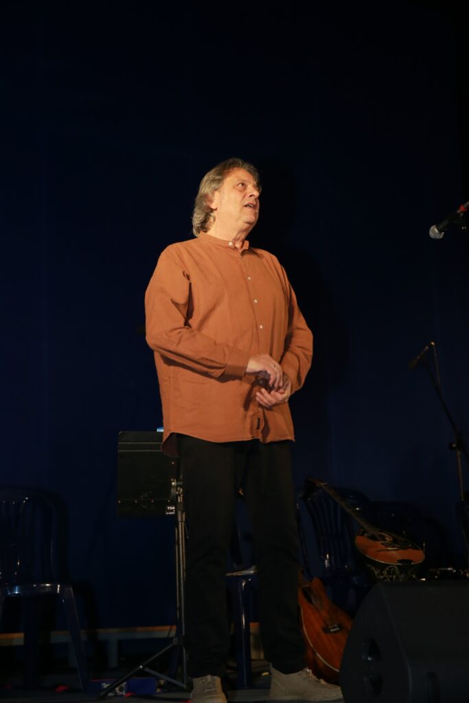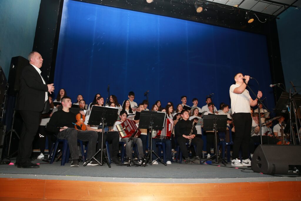 Στο δεύτερο μέρος του προγράμματος, τα παιδιά του Μουσικού Σχολείου Καρδίτσας συνέπραξαν με τον σπουδαίο ερμηνευτή Δημήτρη Ζερβουδάκη.