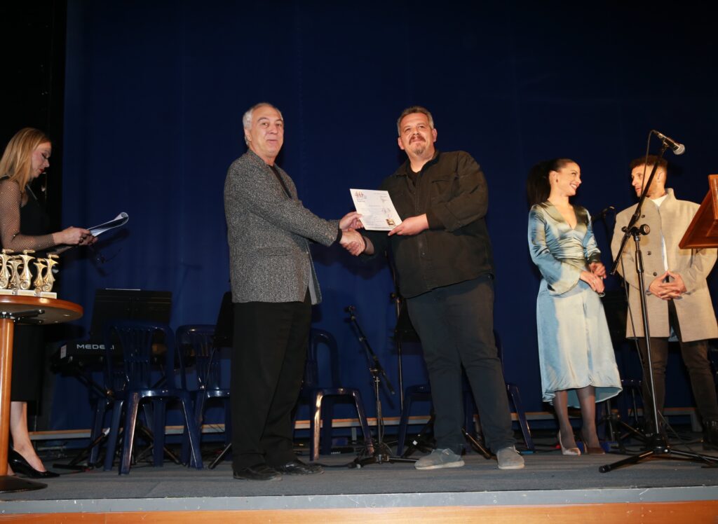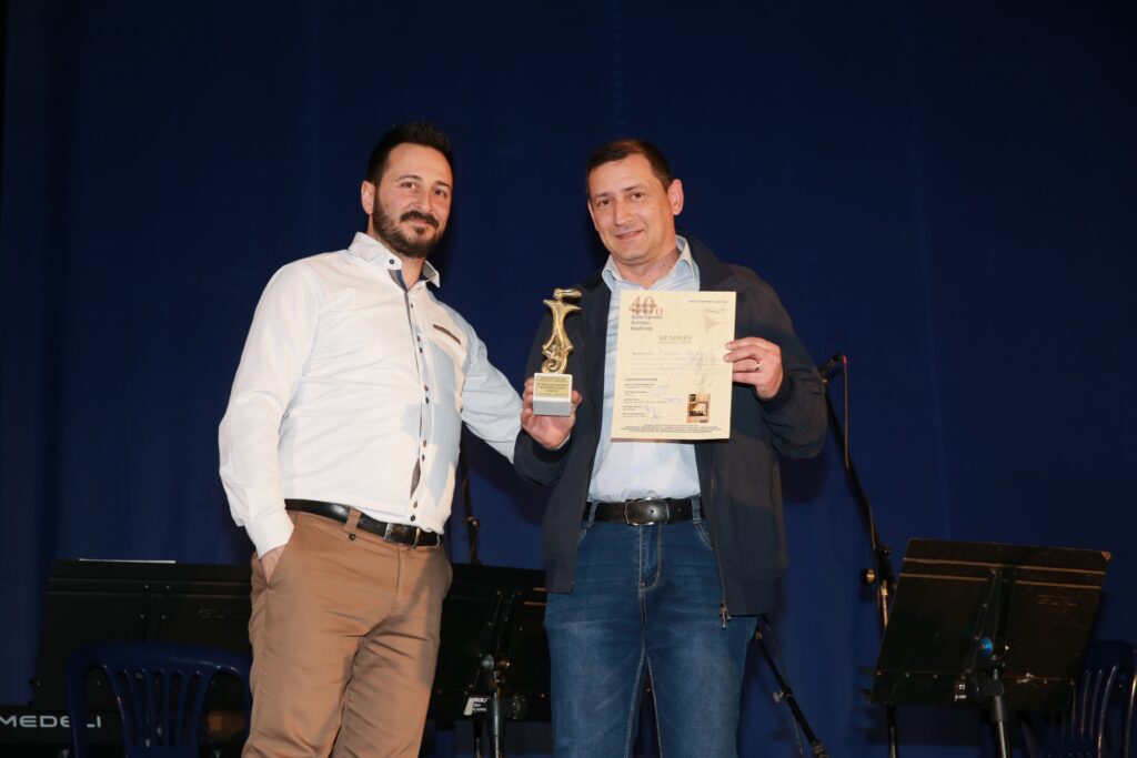 Ο Αντιδήμαρχος Οικονομικών και Πολιτικής Προστασίας του Δήμου Καρδίτσας Σωτήρης Αντωνίου απένειμε στον Δημήτρη Ζερβουδάκη το αναμνηστικό της διοργάνωσης ευχόμενος να είναι πάντα καλά και δημιουργικός.