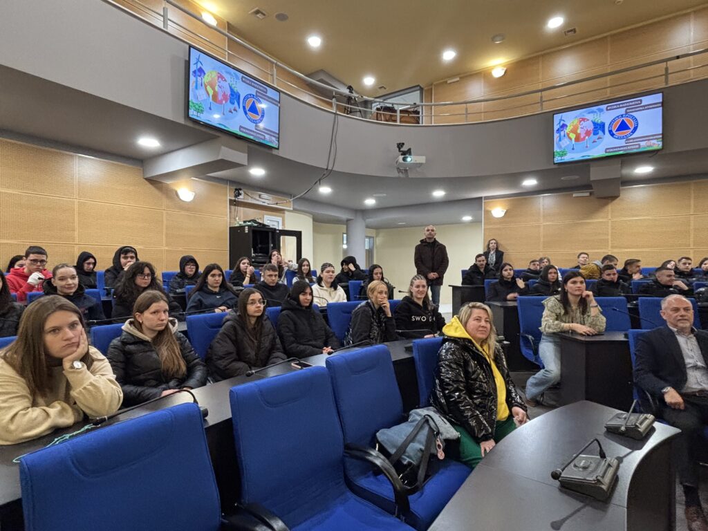 Στη συνέχεια, τα στελέχη της Πολιτικής Προστασίας ενημέρωσαν τους μαθητές για τον τρόπο λειτουργίας του Πρότυπου Κέντρου της Περιφέρειας Θεσσαλίας, καθώς και για τις βασικές αρχές πρόληψης, ετοιμότητας και διαχείρισης κρίσεων σε συνθήκες φυσικών καταστροφών.