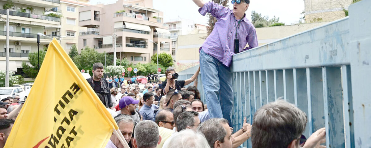Ένταση επικράτησε την Πέμπτη (29/5) έξω από το υπουργείο Μεταφορών, όπου ιδιοκτήτες ταξί ζητούν συνάντηση με τον Κωνσταντίνο Κυρανάκη, με την ηγεσία του υπουργείου να αποκλείει τον πρόεδρο του ΣΑΤΑ, Θύμιο Λυμπερόπουλο.
