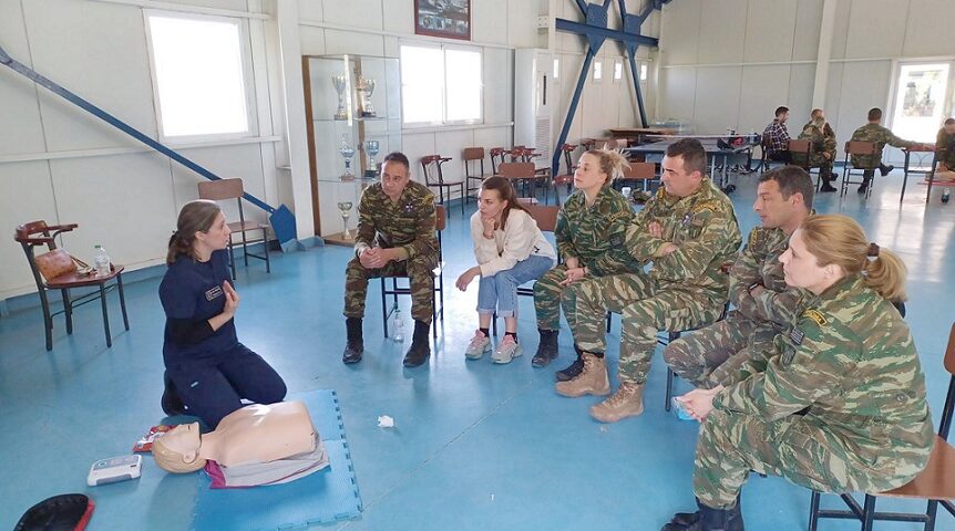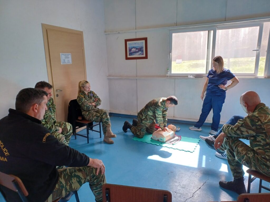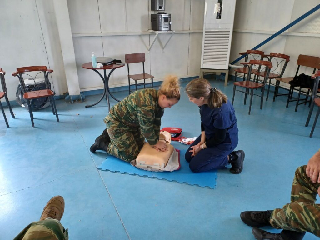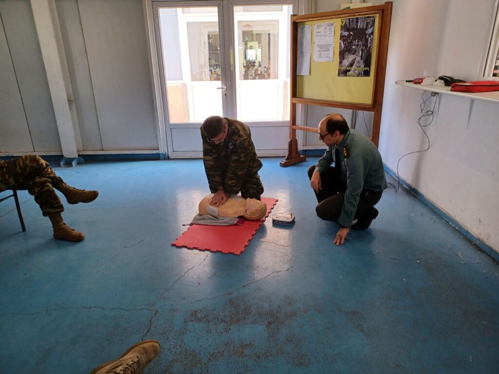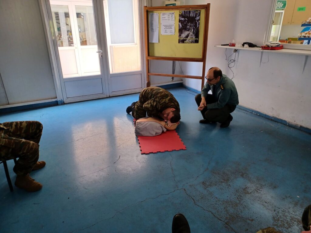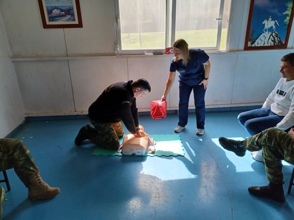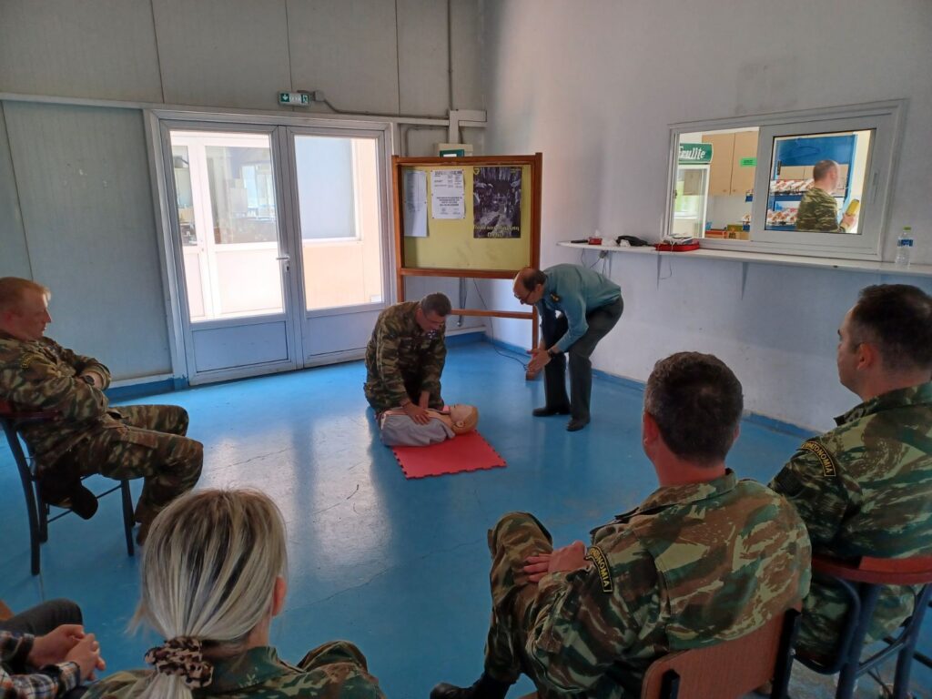 Στο Κέντρο Εκπαίδευσης Στρατονομίας <ΣΤΡΔΟ ΣΧΗ (ΠΖ) ΘΩΜΑ ΝΙΚΗΤΑ (ΜΟΥΝΤΖΙΑ)> στο Δημοτικό Διαμέρισμα Ρούσσου, υπάρχουν προς χρήση δυο (2) απινιδωτές, καθώς και κατάλληλα εκπαιδευμένο προσωπικό για τη χρήση αυτών.