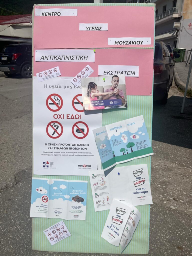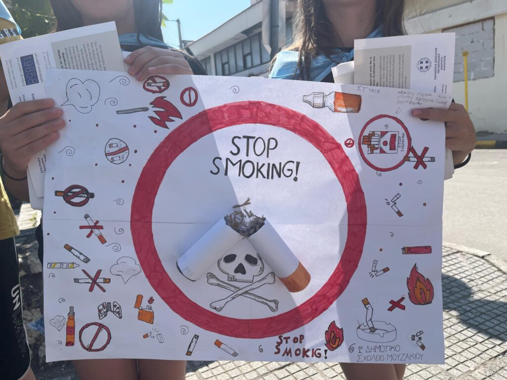 Με αφορμή την Παγκόσμια Ημέρα κατά του Καπνίσματος το Σάββατο 31 Μαΐου, το Παράρτημα της Ελληνικής Αντικαρκινικής Εταιρείας Καρδίτσας σε συνεργασία με το Κέντρο Υγείας Μουζακίου και τα Δημοτικά Σχολεία του Δήμου Μουζακίου, πραγματοποίησαν σημαντική δράση κατά του καπνίσματος στο Μουζάκι.