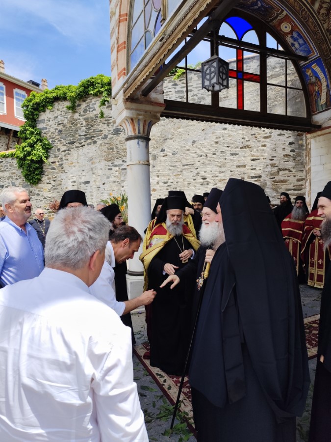 Τριήμερη προσκυνηματική επίσκεψη στο Άγιο Όρος πραγματοποίησε ο Σεβασμιώτατος Μητροπολίτης μας κ. Τιμόθεος από τις 23 έως 25 Μαΐου 2025. Συνοδευόμενος από κληρικούς της ιεράς μητροπόλεως, τους δημάρχους του νομού Καρδίτσης, εκπροσώπους των σωμάτων ασφαλείας και συνεργατών του μετέβη στην ιερά μεγίστη μονή Βατοπαιδίου για να ανταποδώσει ευλαβικό και ευχαριστιακό προσκύνημα στον Παναγιοσκέπαστο τόπο της ορθόδοξης πίστης μας. Τον Σεβασμιώτατο υπεδέχθη εγκάρδια και σύμφωνα με το μοναστηριακό τυπικό ο καθηγούμενος της ιεράς μονής αρχ. Εφραίμ και η μετ αυτού αδελφότητα.