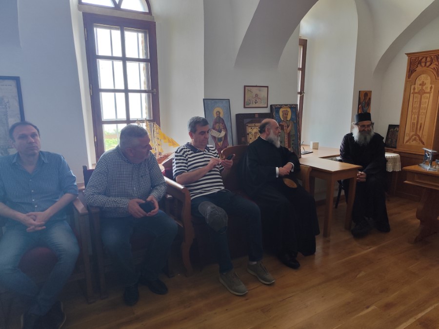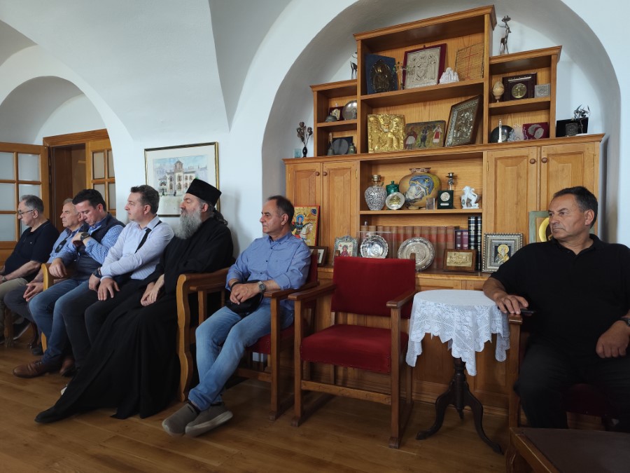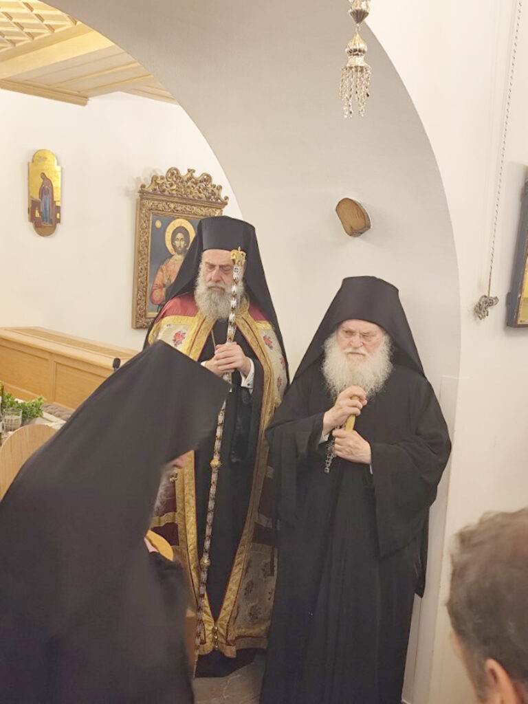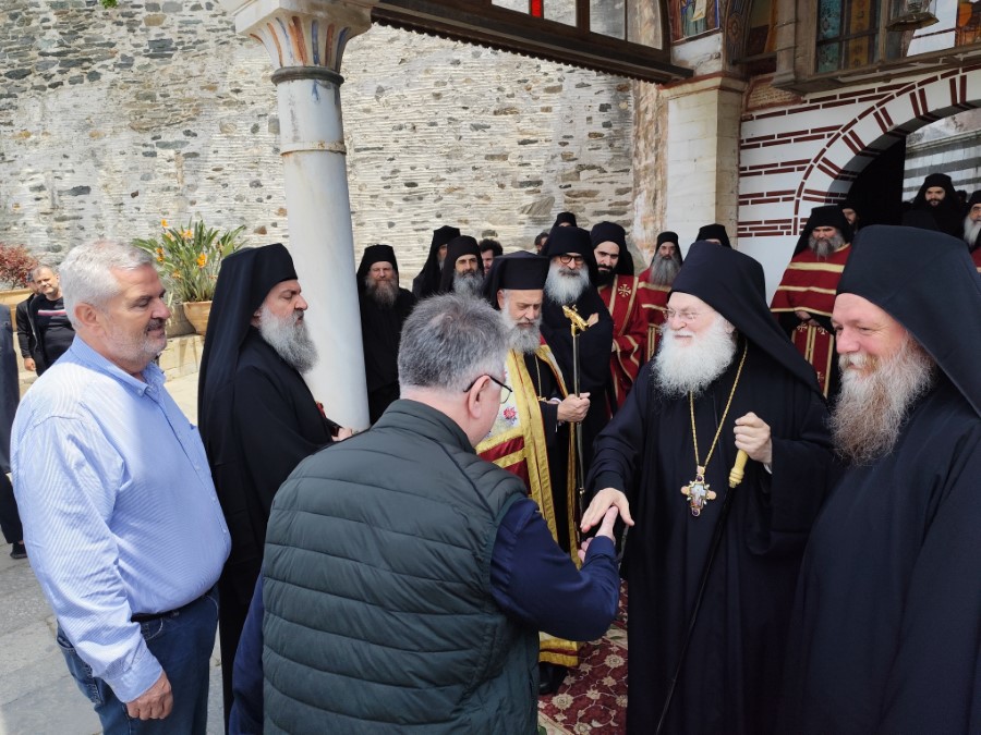 ” Οι ευχαριστίες και η ευγνωμοσύνη προς το πρόσωπό σας Άγιε καθηγούμενε δεν περιορίζονται μόνο στην ελαχιστότητά μου αλλά αποτελούν έκφραση ευγενών συναισθημάτων του πιστού λαού του νομού μας για την μεγάλη ευκαιρία που του δώσατε να ασπαστεί και να ευλογηθεί από το μοναδικό κειμήλιο της μητέρας Του Θεού και μητέρα του ευσεβούς ημών έθνους λίγες ημέρες πριν. Η αγάπη σας, η εν Χριστώ κοινωνία μεταξύ μας επιδαψίλευσε προς την ιερά μας μητρόπολη την ευλογία Του Θεού. Σε ένα τόπο πολύ δοκιμασμένο τα τελευταία χρόνια από απρόβλεπτα καιρικά φαινόμενα αλλά και πολύ ευλογημένο λαό που υπέμεινε με πίστη και ανορθώθηκε έχοντας ελπίδα και εμπιστοσύνη στον Θεό. Σε αυτή την πονεμένη περιοχή κομίσατε προθύμως την Αγία ζώνη της υπερευλογημένης μεσίτριας και μητέρας μας Παναγίας για να ανυψώσετε πνευματικά το ηθικό της, να θεραπεύσετε τον πόνο των ανθρώπων και να ενισχύσετε την πίστη και την ελπίδα μας για το αύριο. Σας ευχαριστούμε θερμά άγιε καθηγούμενε για τον κόπο σας, την αγάπη σας και την προθυμία σας να σταθείτε δίπλα μας ευεργετικά και προσευχητικά δια πρεσβειών της Μητέρας Βασιλίσσης Κυρίας Θεοτόκου” τόνισε βαθιά συγκινημένος ο Σεβασμιώτατος μητροπολίτης μας. Ακολούθησε τράπεζα, περιήγηση στους χώρους της ιεράς μονής και επίσκεψη στο ηγουμενείο της ιεράς μονής όπου ο γέροντας Εφραίμ συνομίλησε με τον Σεβασμιώτατο και τα μέλη της συνοδείας του.