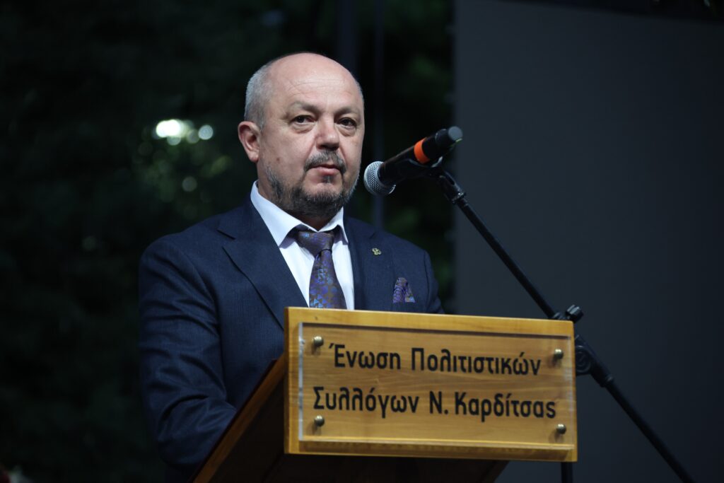 Ο χαιρετισμός του Προέδρου της Ε.Π.Σ.Κ. Μανώλη Στεργιόπουλου «Κυρίες και κύριοι, αγαπητές φίλες και φίλοι, Μας άφησε σπόρο γερό ο Καραϊσκάκης!!! Σ΄ αυτό το ταξίδι στον πολιτισμό, την παράδοση, τα ήθη, τα έθιμα και το φολκλόρ, η Καρδίτσα, επί επτά ημέρες, έδειξε περίτρανα το ταλέντο της, το φιλότιμο και τη φιλοξενία της σε όλο τον κόσμο. Γίναμε όλοι μια πραγματική αγκαλιά και στείλαμε το μήνυμα πως ο πολιτισμός είναι ο μόνος που μπορεί να ενώσει, είναι η κοινή μας γλώσσα, είναι ο κοινός μας τόπος που θα έχουμε πάντα την ανάγκη να επιστρέφουμε σε αυτόν και εκείνος, με τη σειρά του, θα μας δίνει τη δύναμη και τα «καύσιμα» για να συνεχίζουμε την πορεία μας όλοι οι λαοί μαζί, ενωμένοι και μονιασμένοι. Όμως, τα τύμπανα του πολέμου δεν λένε να σιγάσουν και τα όσα τραγικά συμβαίνουν σε διάφορες περιοχές του πλανήτη μας ξεπερνάνε. Παιδιά, που ακόμα δεν πρόλαβαν να ζήσουν το φως της ζωής, και δεν έχουν φάνε, περπατώντας ανάμεσα στα χαλάσματα. Ποιο αύριο μπορεί, αλήθεια, να τους περιμένει; Ποιο αύριο μπορεί, αλήθεια, να περιμένει αυτόν τον πλανήτη, όλους εμάς; Εμείς, όμως, θα ορθώσουμε και πάλι ανάστημα, όπως έκαναν ανά τους αιώνες πάντα οι άνθρωποι απέναντι σε κάθε κίνδυνο και απειλή. Θα παραμείνουμε ενωμένοι και θα αντισταθούμε, με όποιον τρόπο μπορούμε, διατηρώντας αλώβητη την ψυχή μας και παραμένοντας άνθρωποι. Μια μορφή αντίστασης δεν είναι, άλλωστε, και αυτή η Γιορτή; Η Καρδίτσα, κόντρα στα σημεία των καιρών και τις δυσκολίες της εποχής, επιμένει πολιτιστικά. Συνεχίζει να υπηρετεί την παράδοση, να συμβάλει στη συναδέλφωση μεταξύ των λαών καθώς και στη γνώση και στην ανταλλαγή πολιτισμικών στοιχείων μεταξύ τους, αλλά και να αποτελεί ταυτόχρονα ένα φωτεινό παράδειγμα συνεργατισμού και εθελοντισμού. Με αυτά τα λίγα λόγια θα κάνω έναν σύντομο απολογισμό γι ΄ αυτές τις επτά ημέρες γιορτής και γι ΄ αυτούς τους τέσσερις μήνες προετοιμασίας που προηγήθηκαν. Πρώτα από όλα, όμως, θέλω να αναφερθώ στο «άνοιγμα» του Φεστιβάλ σε όλο το Νομό καθώς φέτος, για πρώτη φορά, τα Καραϊσκάκεια ΄΄ταξίδεψαν΄΄ στην ιστορική Αργιθέα. Μετά τη συνεργασία μας με τους Δήμους Μουζακίου και Σοφάδων, η ΄΄πολιτιστική αποκέντρωση΄΄ συνεχίστηκε στην ορεινή Αργοθέα όπου εμφανίστηκε το χορευτικό συγκρότημα από τη Μολδαβία. Θερμές ευχαριστίες στον δήμαρχο Αργιθέας Ανδρέα Στεργίου, τον Αντιδήμαρχο Κώστα Γραμμένο και τον Χαράλαμπο Πούλιο και δίνουμε από τώρα την υπόσχεση ότι του χρόνου θα κάνουμε πολλά περισσότερα. Για 57η χρονιά οι αριθμοί υπήρξαν αμάχητοι: 7 ημέρες παραστάσεων στην Καρδίτσα. 15 παράλληλες περφόρμανς στους υπόλοιπους δήμους του νομού. 4 συγκροτήματα από διαφορετικές γωνιές του πλανήτη. 18 φιλοξενούμενα χορευτικά που εκπροσωπούν τους ελληνικούς τόπους και παραδόσεις. Και 30 ντόπιοι σύλλογοι του νομού μας. Παράλληλη έκθεση φωτογραφίας, σεμινάρια και events. Μουσική, χορός, θέατρο, ενδυματολογία, σκηνικά, αφήγηση και προβολές συνθέτουν ένα μοναδικό πολυθεματικό φεστιβάλ με ανοικτή πρόσβαση για το κοινό και θετικό πρόσημο για την τουριστική μας οικονομία. Πάνω από χίλιοι χορευτές, 30 χορηγοί, 15 και πλέον εθελοντές και ατελείωτες ώρες δουλειάς, αγωνίας, αφοσίωσης στον κοινό στόχο. Αλλά και μπόλικο μεράκι και περίσσευμα ψυχής από όλους μας, που δεν μπορούν να αποτυπωθούν σε αριθμούς αλλά αποτελούν το βασικότερο υλικό πάνω στο οποίο ΄΄χτίζεται΄΄ όλο το υπόλοιπο ΄΄οικοδόμημα΄΄. Φί