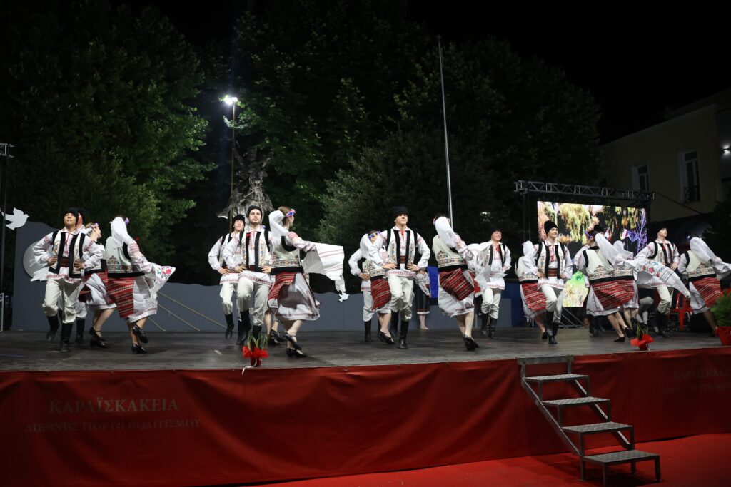 Την Τροχαία Καρδίτσας, τη Δημοτική Αστυνομία Καρδίτσας, το Γενικό Νομαρχιακό Νοσοκομείο Καρδίτσας και την Πυροσβεστική Υπηρεσία για τη στήριξή τους. Τον ηθοποιό, σκηνοθέτη Παύλο Βησσαρίου για τη σκηνοθεσία και την καλλιτεχνική επιμέλεια στην τελετή έναρξης Το Θέατρο Όψεις για την ευγενική χορηγία των σκηνικών Όλα τα χορευτικά συγκροτήματα, ελληνικά, ξένα και ντόπια, που συμμετείχαν στη φετινή διοργάνωση Όλους τους τοπικούς Συλλόγους που φιλοξένησαν χορευτικά συγκροτήματα στα χωριά τους Όλους τους μουσικούς Τους συνοδούς των ξένων χορευτικών, όπως και όλους τους εθελοντές που ήταν η ψυχή της διοργάνωσης Τη Βανέσσα Στυλοπούλου για την παρουσίαση, τις μεταφράσεις και συνολικά για την αδιάκοπη προσφορά της στη διοργάνωση Και φυσικά, ένα μεγάλο ευχαριστώ σε όλους εσάς, στο κοινό των Καραϊσκακείων, που στηρίζετε διαχρονικά το θεσμό. Λίγο πριν ολοκληρώσω, επιτρέψτε μου να αναφερθώ σε έναν άνθρωπο που δεν είναι πια κοντά μας. Στο Νίκο Κωτούλα που το 2024 έφυγε από τη ζωή. Ήταν ο άνθρωπος που επιμελούνταν τις Αφίσες και όλα τα γραφιστικά. Το έργο του παραμένει πλούσια παρακαταθήκη για εμάς και, φυσικά, θα κρατάμε πάντα ζωντανή τη μνήμη του. Με την ευχή να υπάρχει ειρήνη σε όλο τον κόσμο και του χρόνου να είναι όλα πιο φωτεινά και όμορφα και, βεβαίως, ο θεσμός αυτός να έχει μια ακόμα πιο ανοδική πορεία, όπως του αξίζει, καλή αντάμωση τον Ιούνιο του 2026, στα 58α Καραϊσκάκεια».