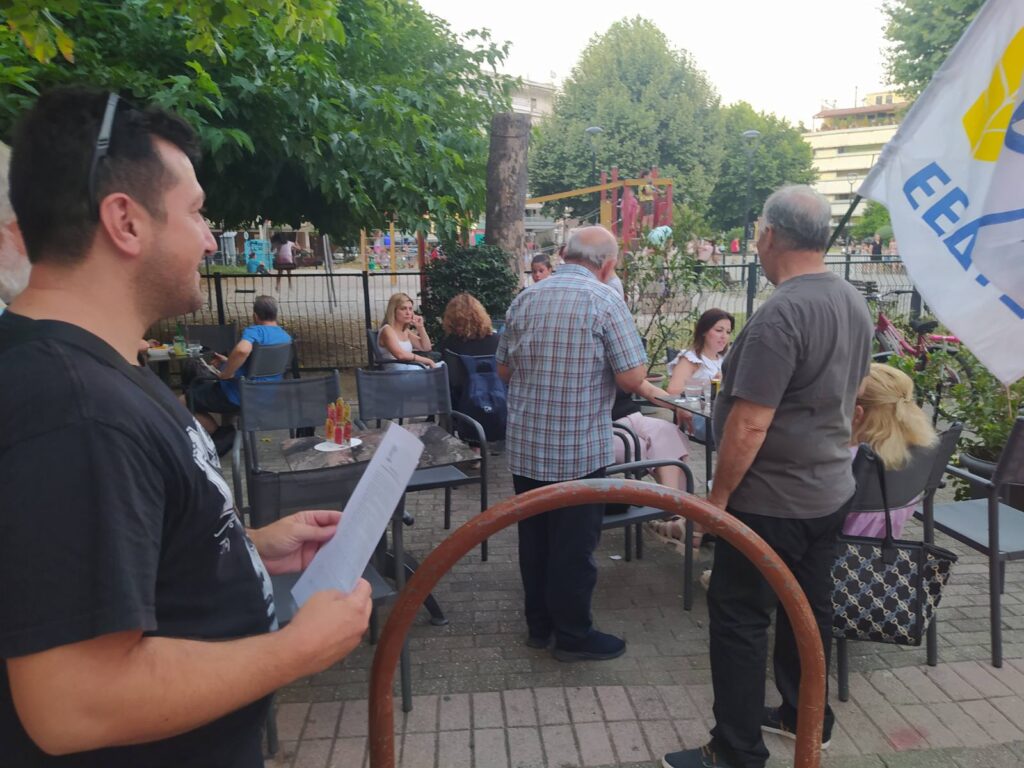 Στη συνέχεια προβάλλοντας την αναγκαιότητα της απεμπλοκής της πατρίδας μας από τους πολεμικούς σχεδιασμούς των ΝΑΤΟ-ΗΠΑ και ΕΕ που κλιμακώνουν τις στρατιωτικές επιχειρήσεις αιματοκυλώντας τους λαούς στη Μέση Ανατολή και σε άλλα μέτωπα πολεμικών συγκρούσεων αλλά και τις ευθύνες της ελληνικής κυβέρνησης, η Επιτροπή Ειρήνης Καρδίτσας οργάνωσε ενημερωτικές παρεμβάσεις σε συνοικίες της πόλης. Μοίρασε υλικό και συζήτησε με κατοίκους.
