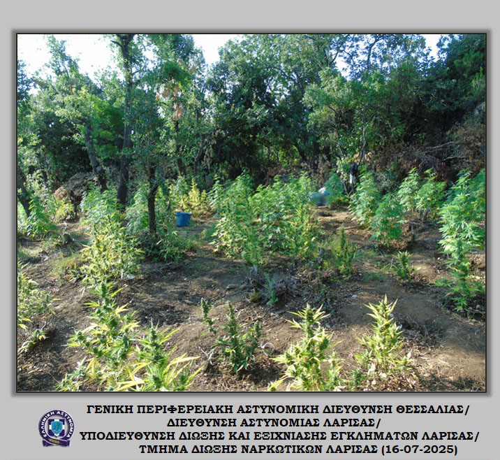Λάρισα: Πάνω από 6.000 δενδρύλλια κάνναβης εντοπίστηκαν σε δύσβατη περιοχή του Δήμου Αγιάς – Η μεγαλύτερη χασισοφυτεία που έχει εντοπιστεί ποτέ στο Νομό