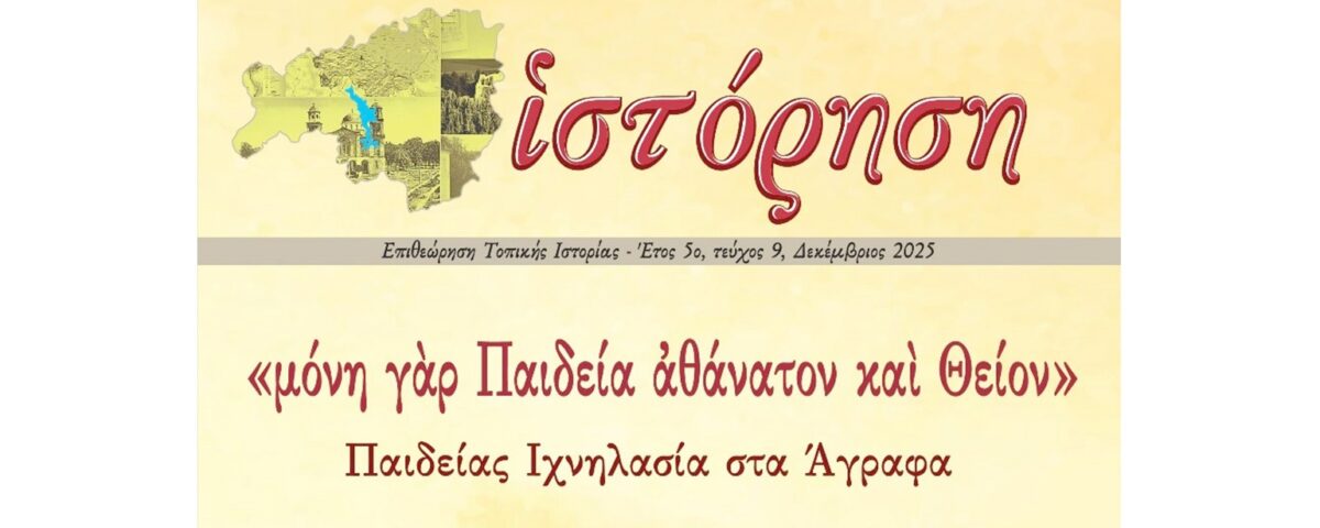 Ο επόμενος τόμος της εξαμηνιαίας επιθεώρησης «Ιστόρηση» τοπικής ιστορίας για τις κοινότητες του Δήμου Λίμνης Πλαστήρα θα κυκλοφορήσει τον Δεκέμβρη 2025. Θέμα του 9ου τόμου είναι η Παιδεία στα Άγραφα και τα σχολεία των παραλίμνιων κοινοτήτων. Όλοι οι τόμοι διατίθενται ελεύθερα από την Ψηφιακή Βιβλιοθήκη του Δήμου Λίμνης Πλαστήρα https://plastiras-ota.gr/digital-books-museum.