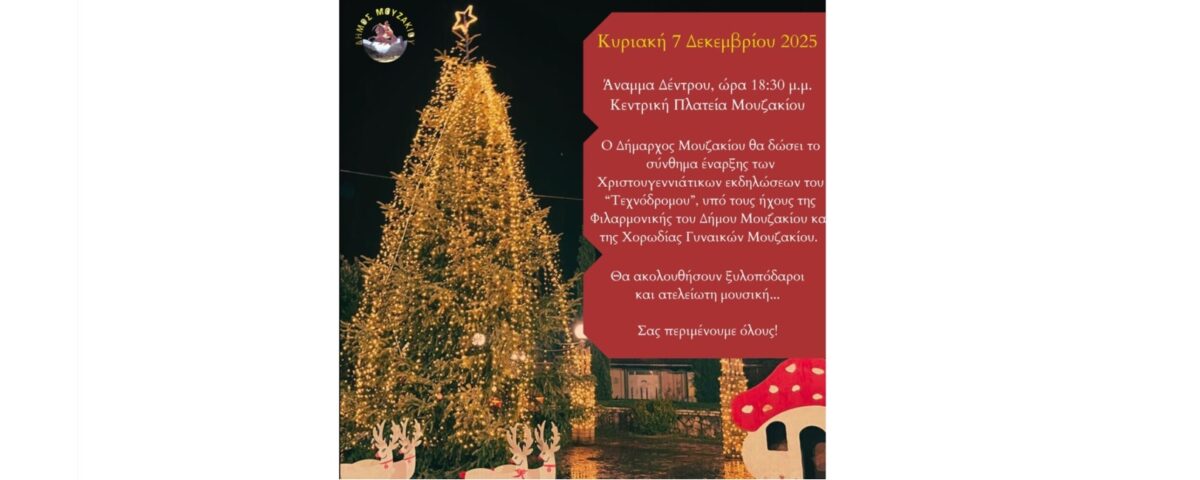 Σας περιμένουμε όλους, μικρούς και μεγάλους, για να φωτίσουμε το Μουζάκι και να υποδεχτούμε με χαρά την εορταστική περίοδο.