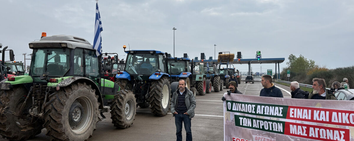 Μπλόκο στα διόδια του Λόγγου στον Ε65, λίγο έξω από το κέντρο των Τρικάλων έστησαν αγρότες και κτηνοτρόφοι του νομού, που με τρακτέρ ανέβηκαν πάνω στην εθνική οδό και απέκλεισαν και τα δύο ρεύματα κυκλοφορίας με μια αιφνιδιαστική κίνηση.