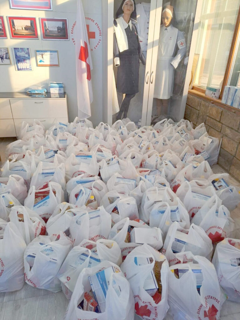 Τα τρόφιμα προέρχονται από συλλογικές δράσεις του Τμήματος, τη σημαντική ποσότητα υλικής βοήθειας που μεταφέρθηκε από τις Κεντρικές Αποθήκες του Ελληνικού Ερυθρού Σταυρού, την πολύτιμη προσφορά των σουπερ μάρκετ της πόλης καθώς και τη βοήθεια όλων των καταναλωτών, που συνεχίζει να στηρίζει το εθελοντικό έργο του Ελληνικού Ερυθρού Σταυρού.