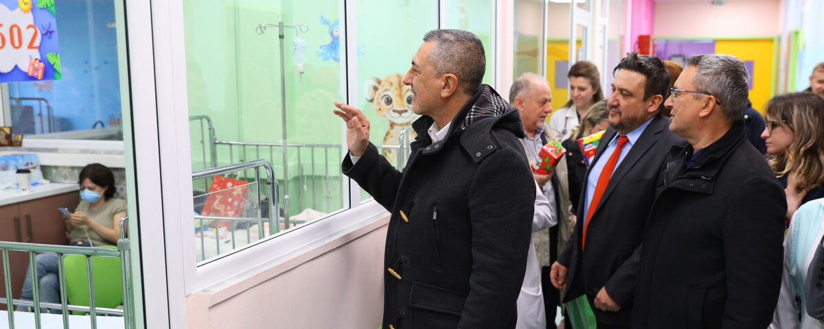 Δώρα αγάπης που δεν χωράνε μόνο σε κουτιά, μοίρασαν χθες στην Παιδιατρική Κλινική του Γενικού Νοσοκομείου Λάρισας ο Περιφερειάρχης Θεσσαλίας κ. Δημήτρης Κουρέτας και μέλη της Περιφερειακής Αρχής. Ο Περιφερειάρχης ευχήθηκε περαστικά στα παιδιά που η συγκυρία έξαρσης των ιώσεων τα αναγκάζει να περάσουν τα Χριστούγεννα στο Νοσοκομείο, μαζί με τους γονείς τους και έσφιξε τα χέρια γιατρών και νοσοκόμων που ξέρουν τι σημαίνει η προσφορά αγάπης και φροντίδας.