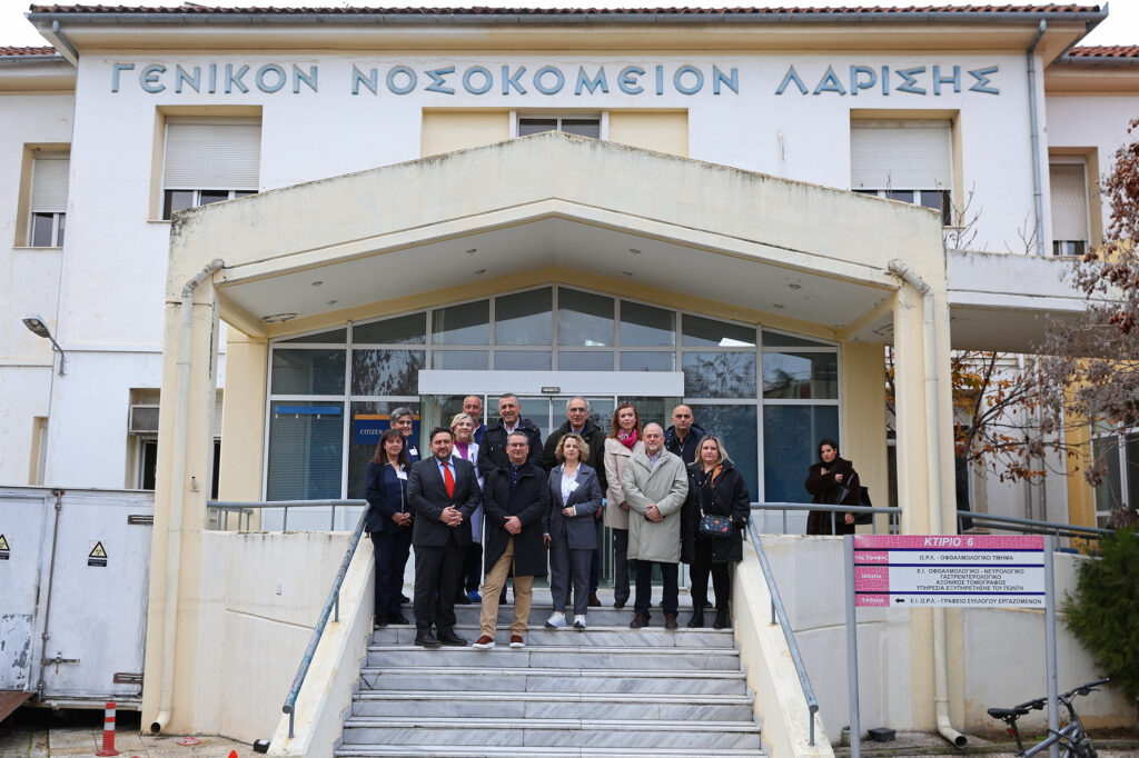 Τον Περιφερειάρχη συνόδευαν οι αντιπεριφερειάρχες κ.κ. Μαρία Γαλλιού, Νατάσσα Αδαμοπούλου, Βασίλης Σίμος, Ανδριάνα Κομίτσα, Βαγγέλης Αποστόλου, ο πρόεδρος της Αγροδιατροφικής Σύμπραξης Γρηγόρης Γκουντόπουλος, ο σύμβουλος του Βασίλης Έξαρχος, ενώ τον υποδέχτηκαν ο Διοικητής του ΓΝΛ Γρηγόρης Βλαχάκης, ο Διευθυντής των ΤΕΠ Δημ. Μπαμπαλής, η Διευθύντρια της Παιδιατρικής Σοφία Αλευρά, η Διευθύντρια Διοικητικών Υπηρεσιών Δήμητρα Σαρακατσάνου, γιατροί και το νοσηλευτικό προσωπικό της Κλινικής.