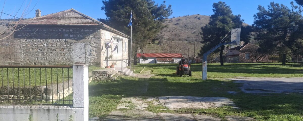 Άγιος Δημήτριος Παλαμά: Eργασίες περιποίησης πρασίνου στον αύλειο χώρο του σχολείου και στην πλατεία του χωριού