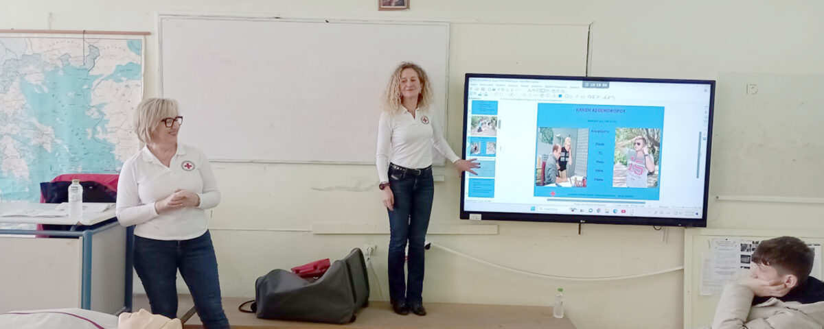 Οι μαθητές της Γ΄ Γυμνασίου ενημερώθηκαν για τη Δράση του Ελληνικού Ερυθρού Σταυρού. Αποκόμισαν ενδιαφέρουσες βασικές γνώσεις- πώς να βοηθούν ανθρώπους που έχουν απώλεια αισθήσεων, πνιγμό από τροφή, , ΚΑΑ/απινιδωτής, παιδικές πρώτες βοήθειες και άλλα – από έμπειρους εκπαιδευτές, εστιάζοντας στην πρακτική εξάσκηση και την εθελοντική προσφορά.