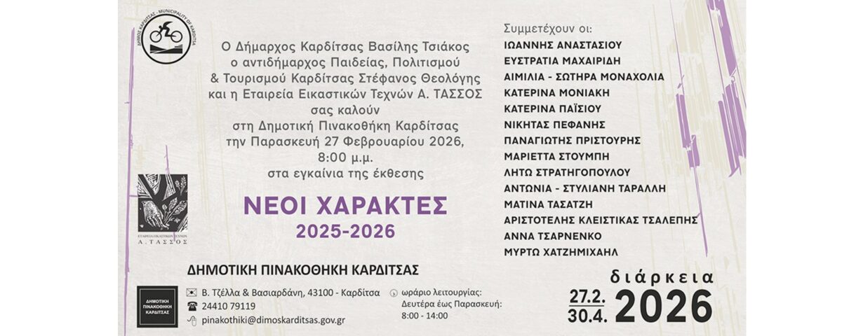 H Δημοτική Πινακοθήκη Καρδίτσας υποδέχεται την έκθεση ΝΕΟΙ ΧΑΡΑΚΤΕΣ 2025-2026
