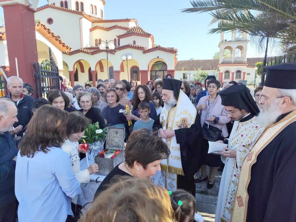 Η πομπή της μεταφοράς συνέχισε προς την πόλη της Καρδίτσας, με ενδιάμεσες στάσεις στο Παλαιοκλήσι και έξω από τον Ιερό Ναό Αγίου Δημητρίου.