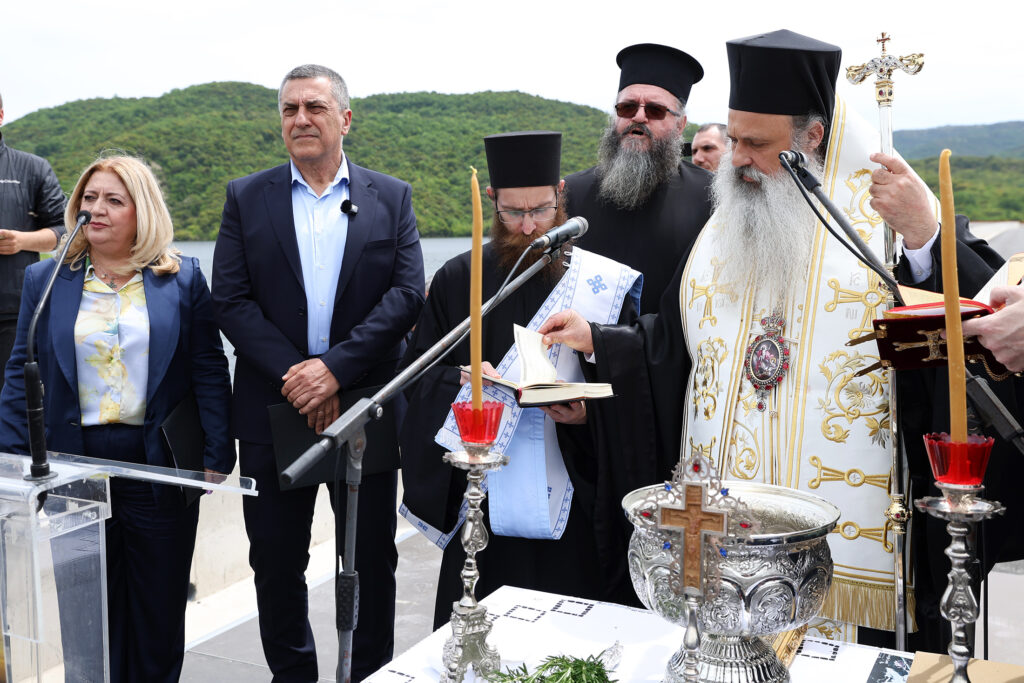 Τον αγιασμό τέλεσε ο Σεβασμιώτατος Μητροπολίτης Θεόκλητος ο οποίος στη σύντομη ομιλία του συνεχάρη την Περιφερειακή Αρχή και όλους όσοι προσέφεραν για την ολοκλήρωση του έργου και ευχήθηκε αυτό να αποτελέσει την απαρχή και άλλων σημαντικών έργων που θα προσφέρουν στον τόπο και στο περιβάλλον.