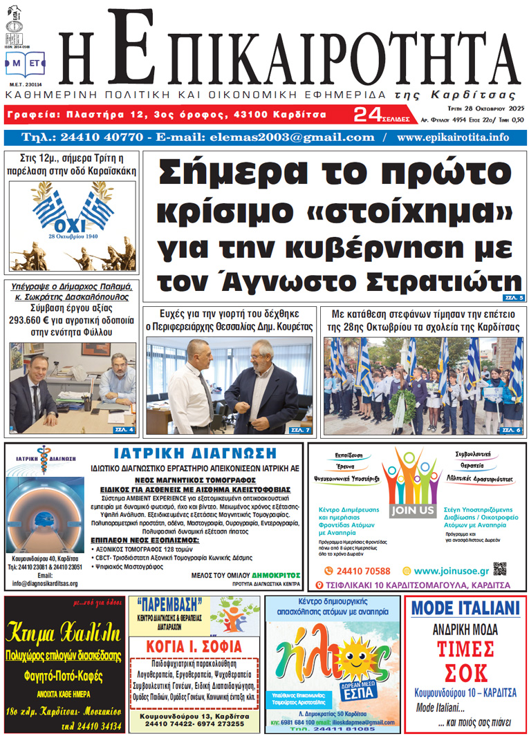 ΠΕΜΠΤΗ 16 ΜΑΙΟΥ 2024 – HOTEL KIERION – ΚΑΡΔΙΤΣΑ 8:30 μ.μ