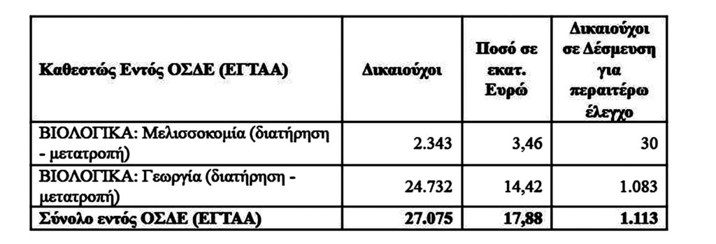 Πληρωμές Βιολογικής Γεωργίας και Μελισσοκομίας Εντός ΟΣΔΕ:
