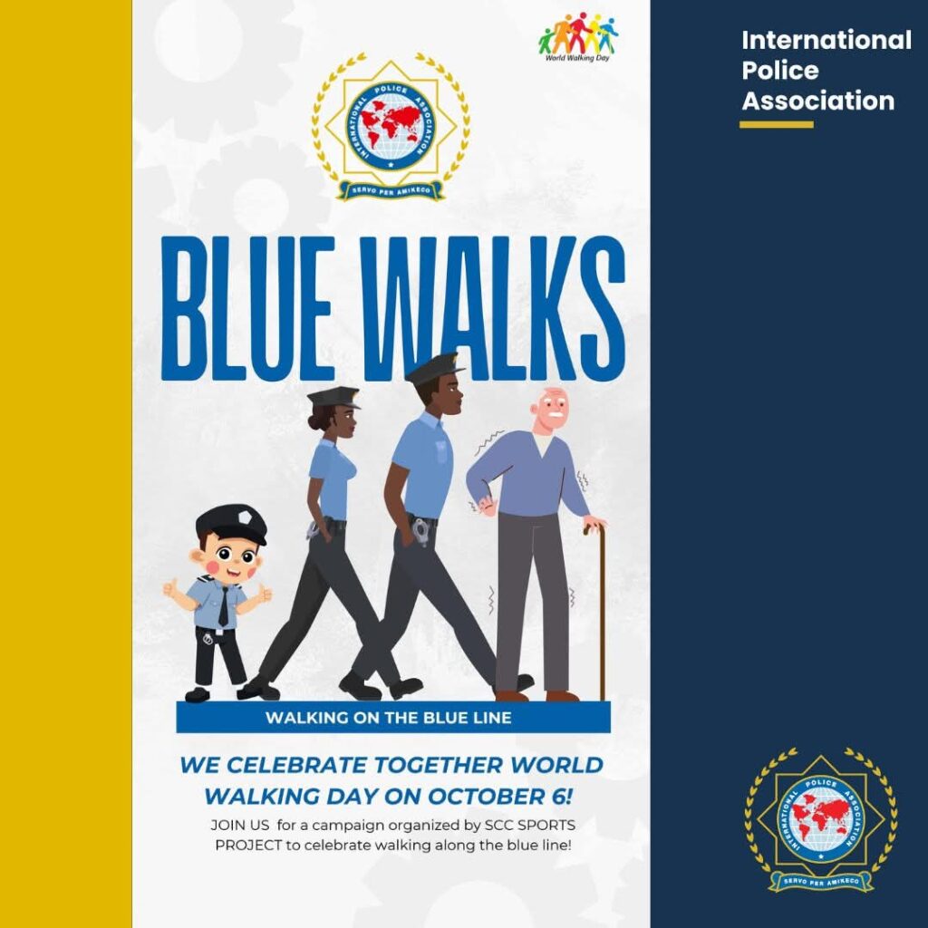Με στόχο την ενθάρρυνση των μελών και φίλων και των οικογενειών τους, ώστε να έρθουν πιο κοντά στο φυσικό περιβάλλον και να βάλουν στη ζωή τους την ήπια άσκηση, η Διεθνής Ένωση Αστυνομικών ξεκίνησε από την περασμένη χρονιά τη δράση «Blue walks – Μπλε περίπατοι». Με αφορμή την Παγκόσμια Ημέρα Πεζοπορίας, στις 5 Οκτωβρίου, η ΙΡΑ παροτρύνει όλα τα εθνικά τμήματα και τις τοπικές διοικήσεις να οργανώσουν ανάλογες δράσεις, στις οποίες μάλιστα δίνει παγκόσμια δημοσιότητα.