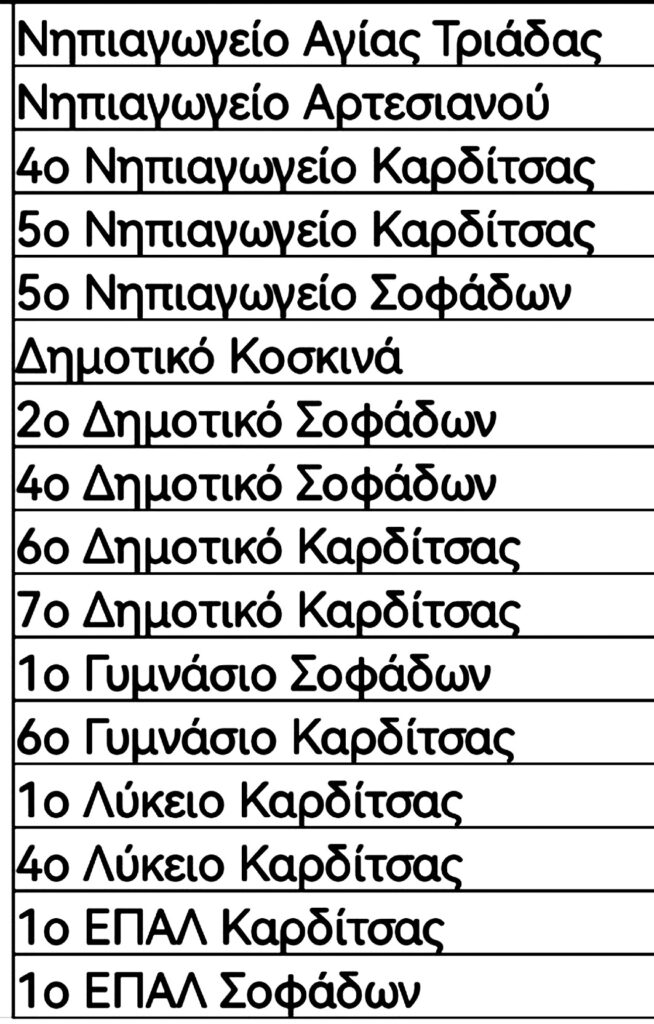 Οι 16 σχολικές μονάδες που θα λάβουν τον σχολικό εξοπλισμό είναι: