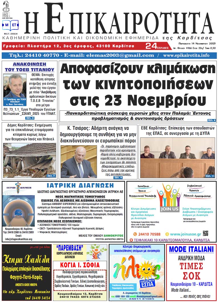 Βρεθήκαμε τη Δευτέρα 10 Νοεμβρίου όλοι μαζί, παρουσία του Πρωθυπουργού κ. Κυριάκου Μητσοτάκη, της Υπουργού Παιδείας κα. Σοφίας Ζαχαράκη, του Υπουργού Υποδομών και Μεταφορών κ. Χρίστου Δήμα αλλά και άλλων Υπουργών της Κυβέρνησης, του ΓΓ του ΥΠΑΙΘΑ κ Γιάννη Παπαδομαρκάκη, της Προέδρου της Ένωσης Ελλήνων Εφοπλιστών κα. Μελίνας Τραυλού, εκπροσώπων της ΚΤΥΠ, εκπαιδευτικών, μαθητών και γονέων στο Ωδείο Αθηνών, σε μια εκδήλωση προς τιμήν της Ένωσης των Ελλήνων Εφοπλιστών, οι οποίοι ως δωρητές, συνέβαλαν καθοριστικά στην αποκατάσταση των σχολείων από τις ζημιές, μετά τις φυσικές καταστροφές από τον “Daniel”, στις 7 Σεπτεμβρίου του 2023. Τα νηπιαγωγεία 1ο Παλαμά, 3ο Παλαμά, Μαραθέας, Κοσκινά και τα δημοτικά σχολεία 1ο Παλαμά, Μαραθέας, Κοσκινά, μεταξύ άλλων σχολείων της Θεσσαλίας, ανακαινίσθηκαν από την αρχή, χάρη στη δωρεά της Ένωσης των Ελλήνων Εφοπλιστών αλλά και άλλων επιφανών πολιτών της χώρας, συμβάλλοντας καθοριστικά στην αναβάθμιση της ποιότητας της εκπαίδευσης, χαρίζοντας χαμόγελα και χαρά στους μαθητές και στους εκπαιδευτικούς των σχολείων αυτών.